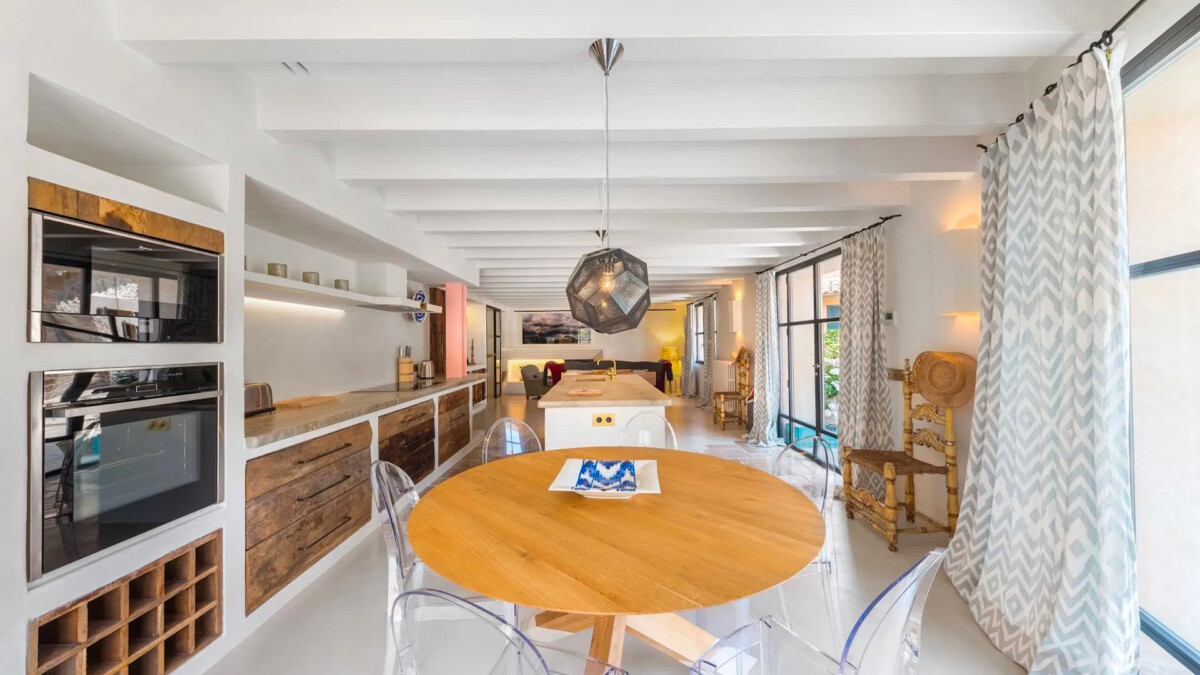 Les intérieurs de la villa marient harmonieusement le charme traditionnel et le design moderne. Avec des finitions haut de gamme et des détails artisanaux, chaque pièce respire le confort et le raffinement. La cuisine équipée inspire à la créativité culinaire, tandis que la salle multimédia ultramoderne et le salon avec cheminée offrent des espaces parfaits pour se détendre. Les repas peuvent être pris à l’intérieur comme à l’extérieur, grâce à des espaces aménagés pour profiter du cadre exceptionnel.