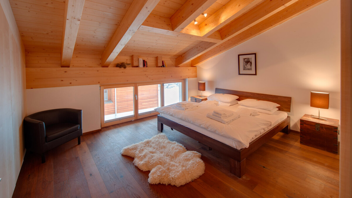 Kuri II combine le luxe moderne avec une ambiance alpine. Ses plafonds en bois avec ses poutres en pente dégagent une atmosphère cosy alors que sa double hauteur de plafond vous donne un sentiment de luxe et d’espace. Vers le sud les grandes baies vitrées offrent un panorama permanent, nuit et jour, du village et des montagnes majestueuses.