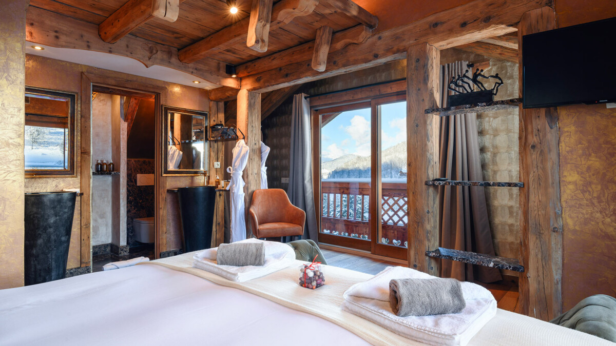 The chalet has a balcony and a terrace with unobstructed views of the surrounding peaks. These outdoor spaces are ideal for relaxing or sharing a meal while enjoying the scenery.