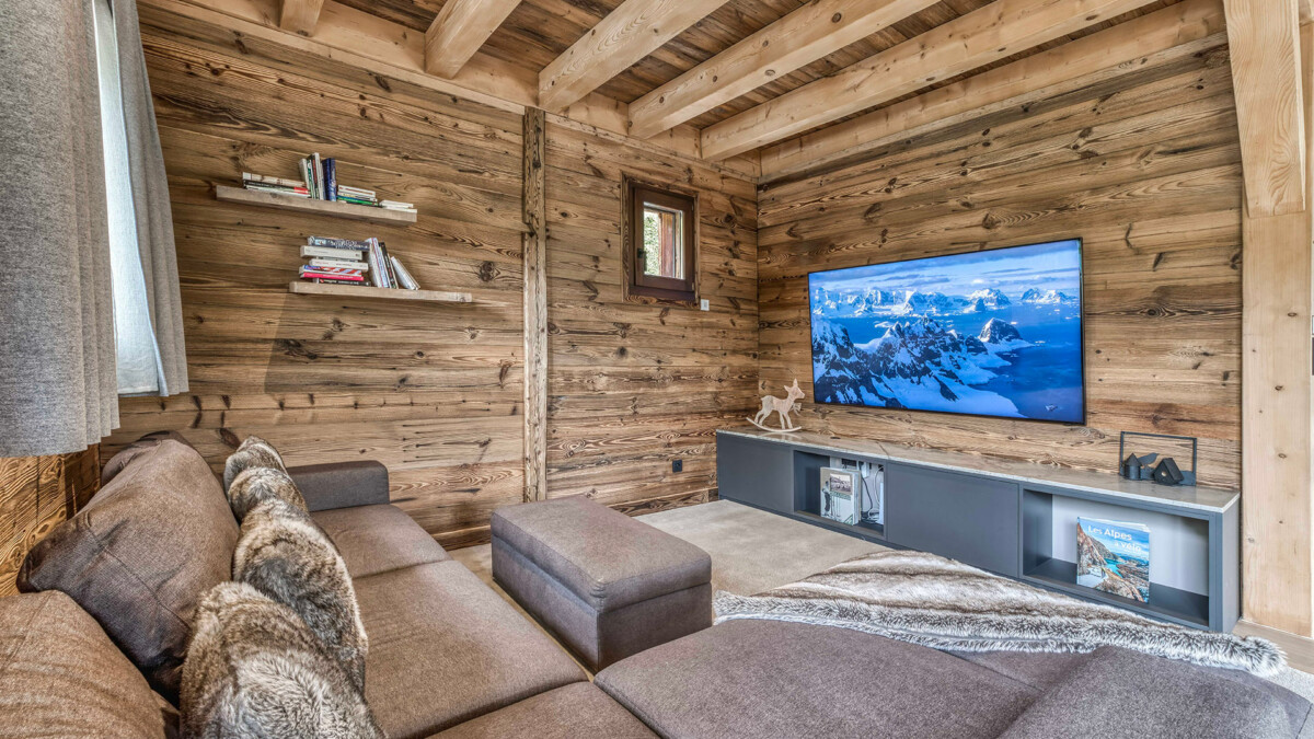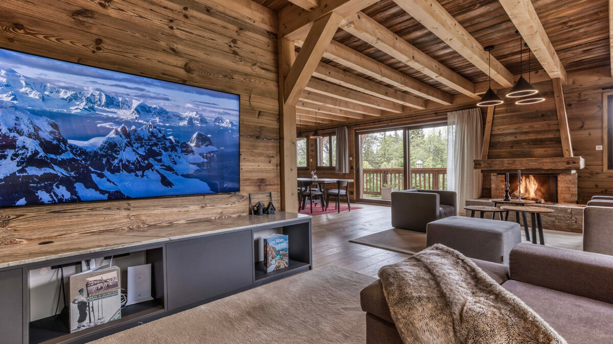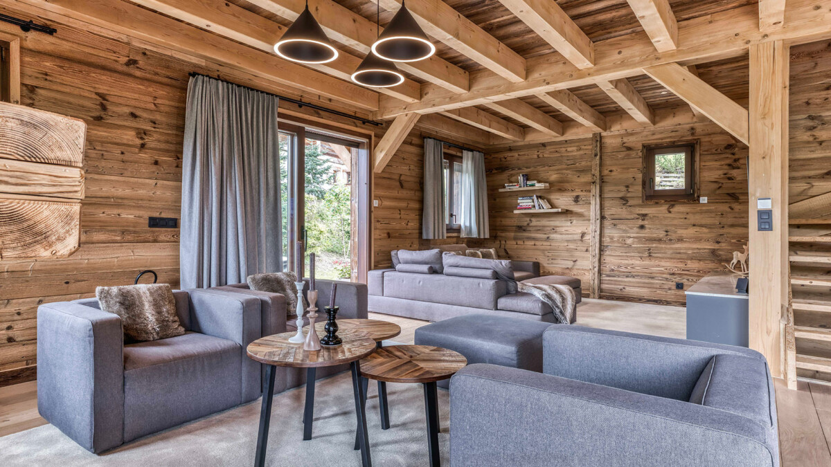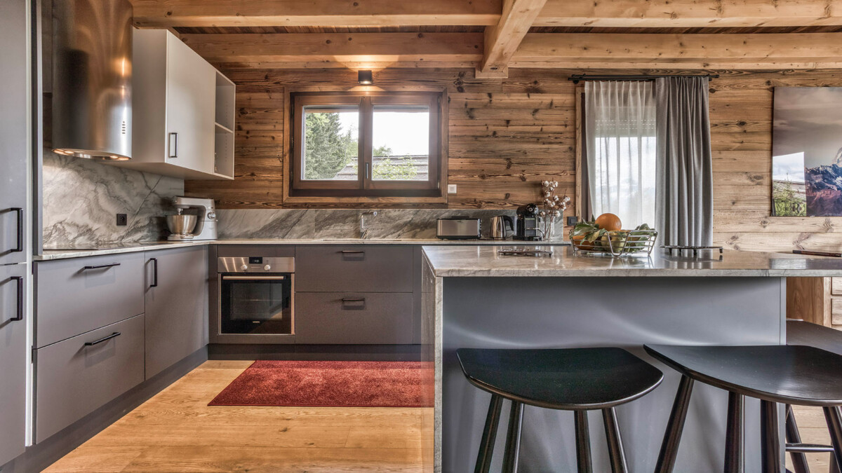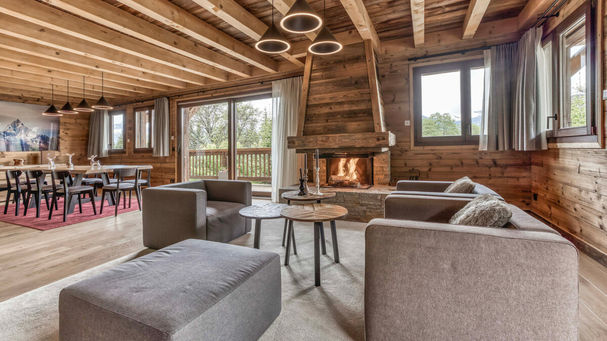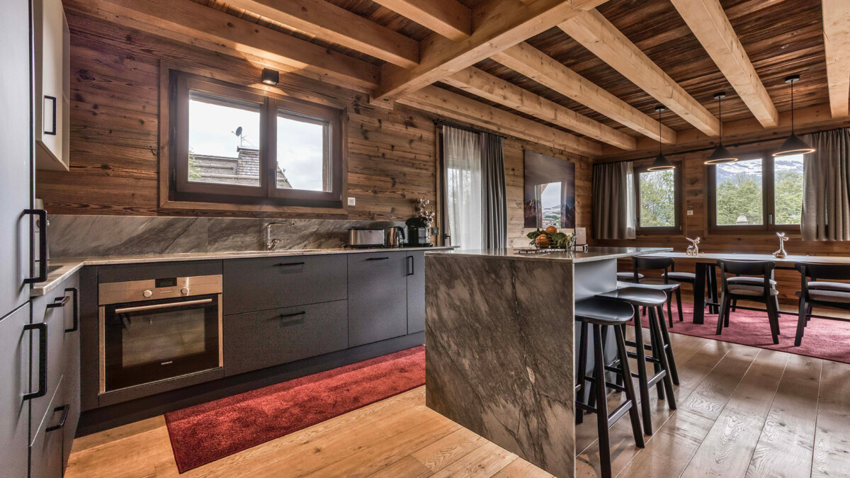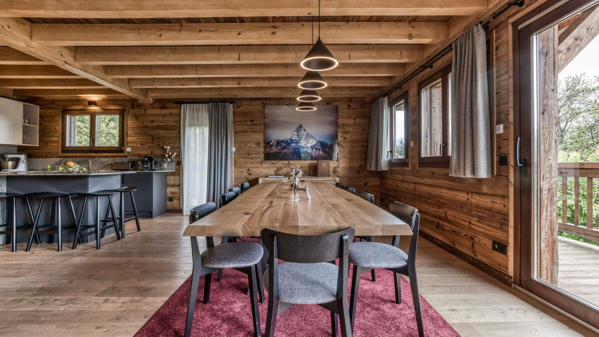 Its generous volumes and elegant design are a perfect blend of Alpine tradition and contemporary comfort. The living room, bathed in light thanks to a large bay window, offers a spectacular view of the mountains, creating a warm and soothing atmosphere. Noble materials such as wood and stone harmonize to create a luxurious, authentic setting. The dining room is ideal for sharing convivial meals, with seminar or event capacity for up to 26 seated guests. The open, fully-equipped kitchen lets you prepare meals while enjoying the convivial atmosphere.