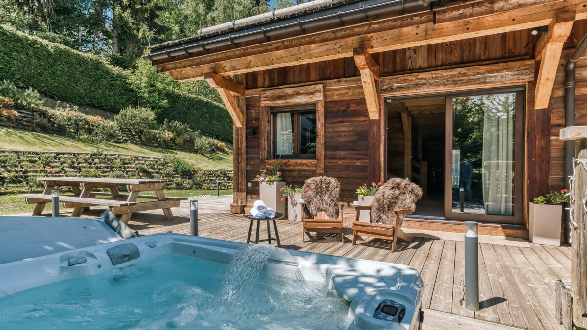 The spacious terrace, with outdoor Jacuzzi, offers the perfect space to relax after a day exploring the mountains. Enjoy the serenity of the setting in the 954 m² private wooded park and the views.