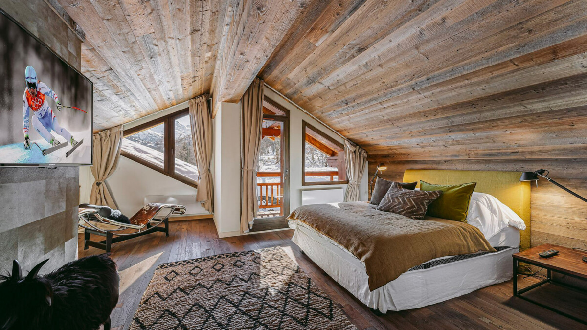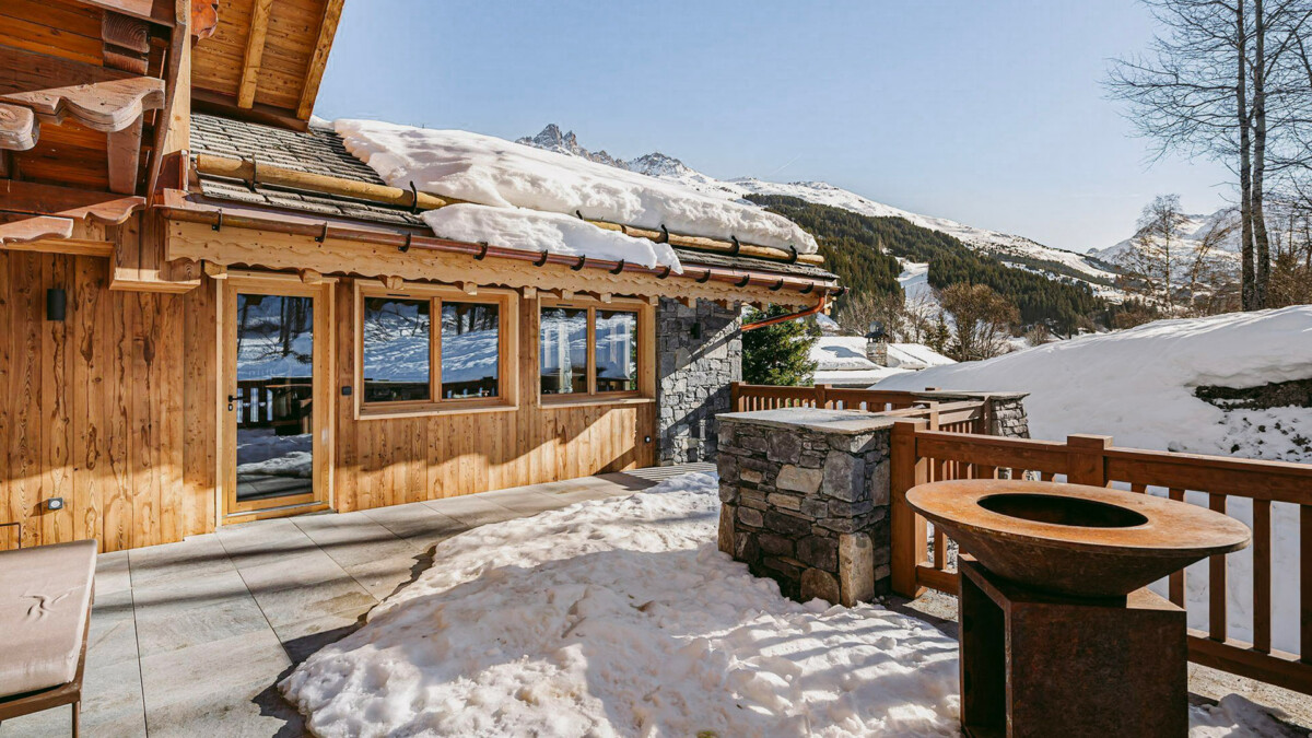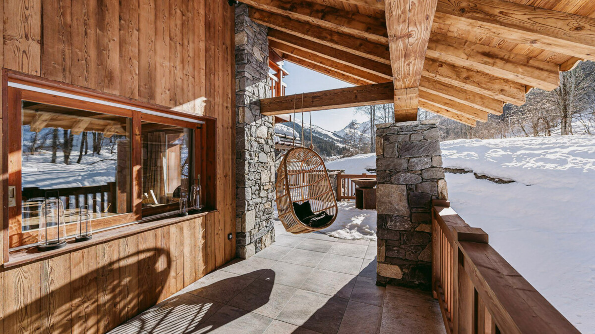 The chalet has several balconies and terraces, designed for enjoying the alpine landscape throughout the day. The private balcony of the master suite overlooks the valley, while the outdoor areas are perfect for sharing moments after skiing.