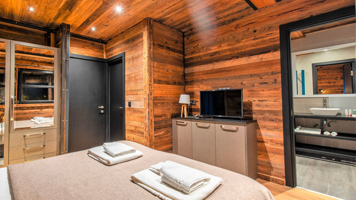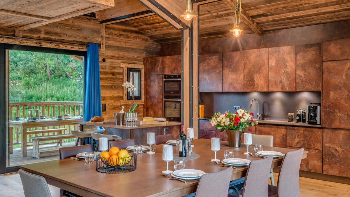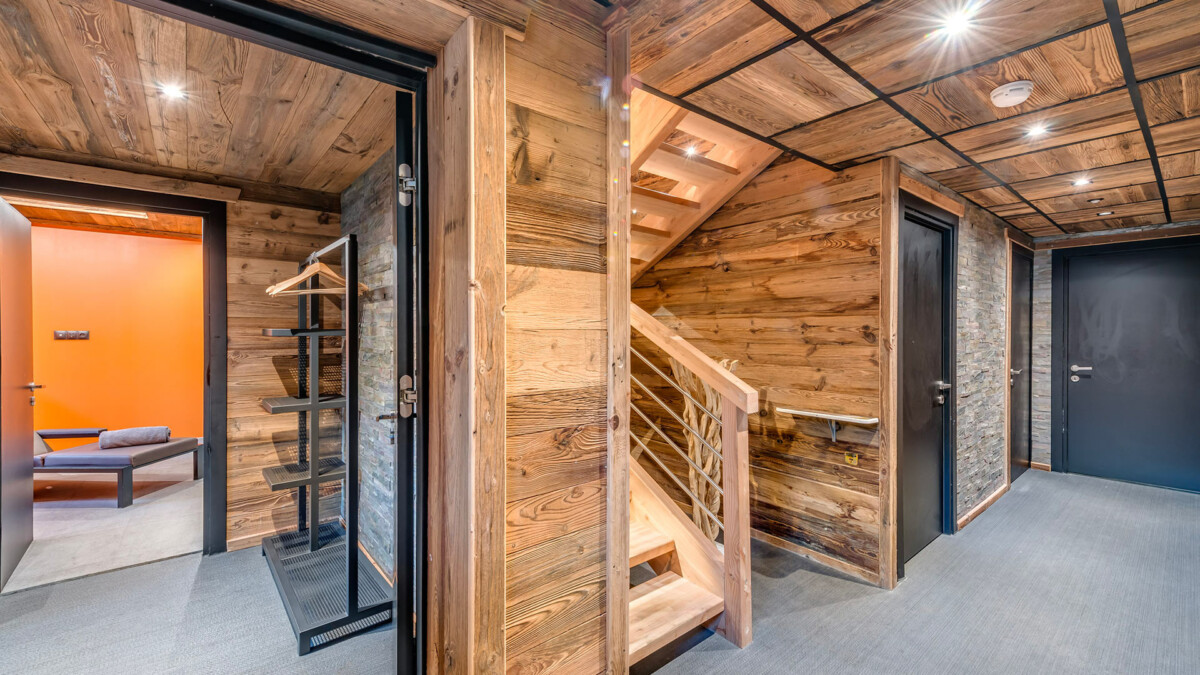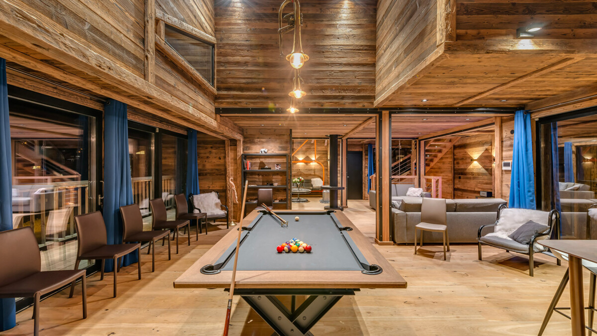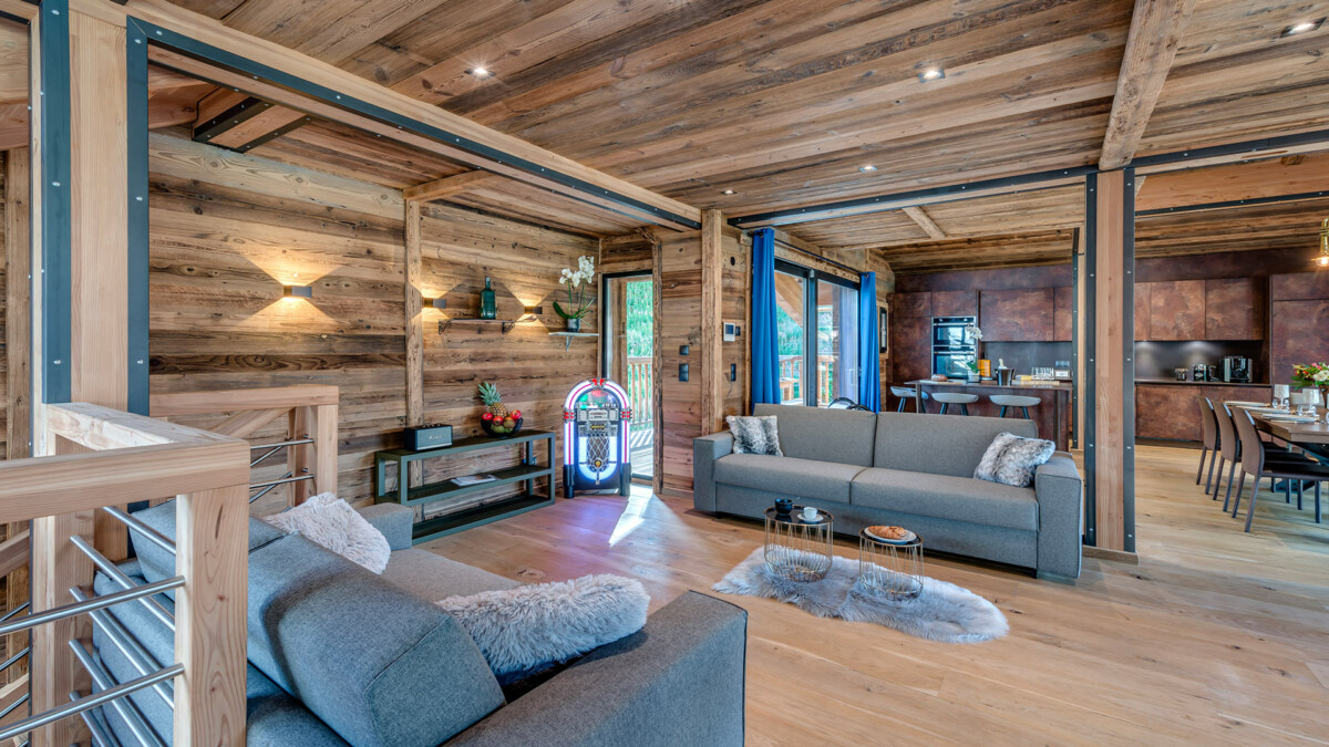 Le Chalet séduit par sa décoration alliant tradition et modernité. Les espaces de vie, dont le salon avec balançoires-télésièges, présentent un mobilier sur mesure et des touches créatives.