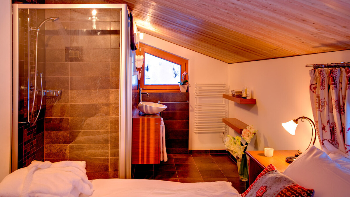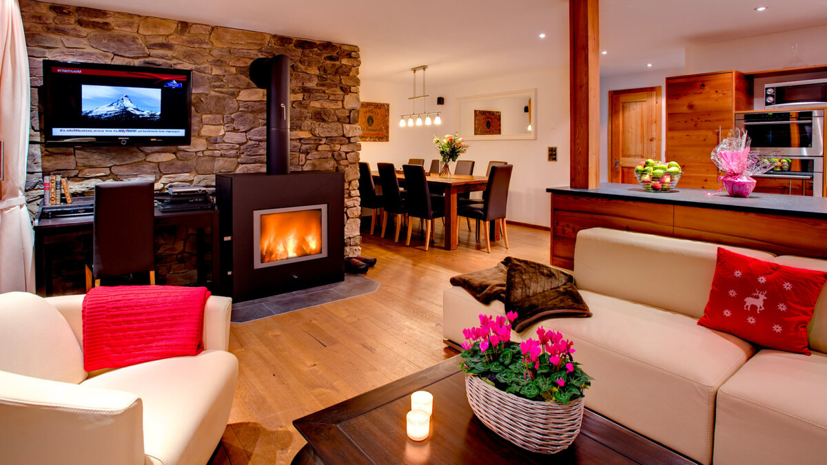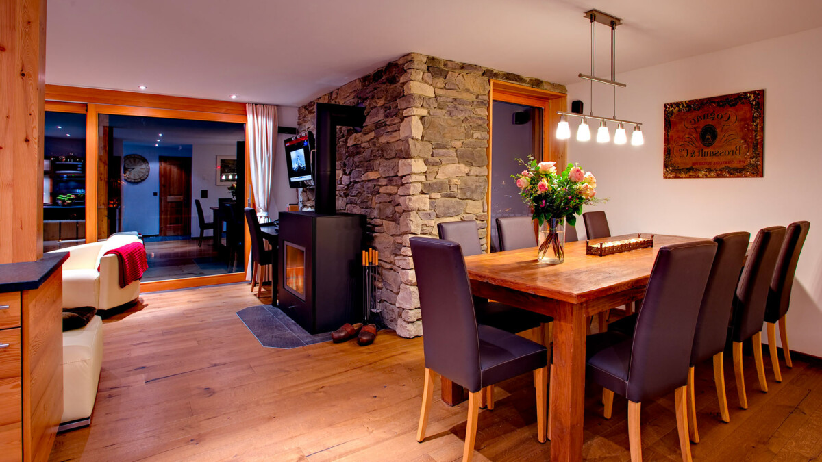 L’accès au chalet est aisé : à 200m du départ du Matterhorn Express et de la fin des pistes, vous trouverez un tunnel au niveau de la rue qui vous mènera à un ascenseur donnant accès à une promenade de deux minutes jusqu’à l’entrée de la propriété. Les skis et les chaussures peuvent être stockés dans le “ski-room” situé dans le tunnel. Bien qu’il n’offre pas une vue sur le Mont Cervin, le soleil y est présent dès son lever.