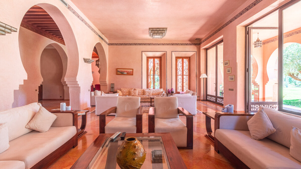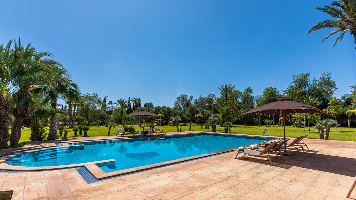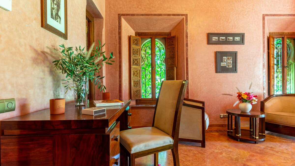 Cette magnifique villa, alliant architecture traditionnelle et Art Déco, est nichée au cœur de la Palmeraie de Marrakech, dans un splendide jardin d’un hectare. Cette maison de famille, idéale tant en hiver qu’en été, est un havre de paix à quelques minutes seulement de la médina de Marrakech.