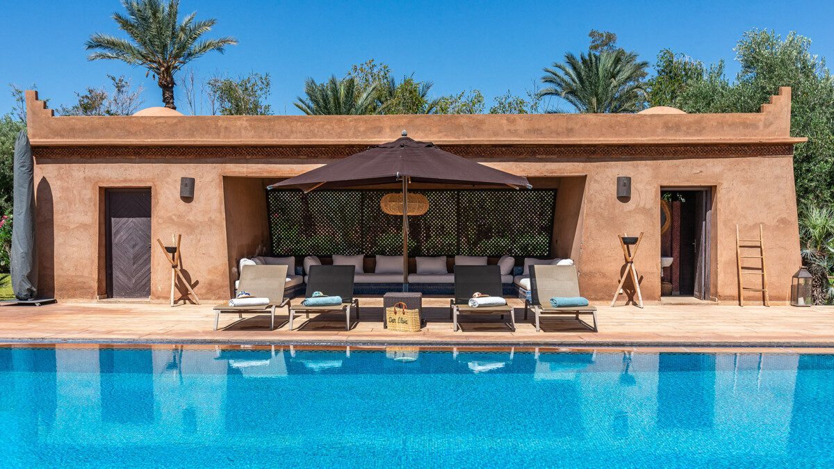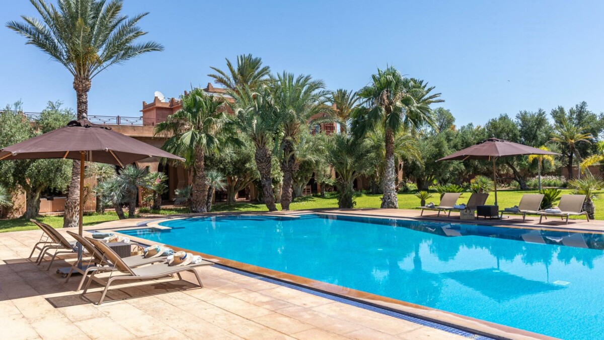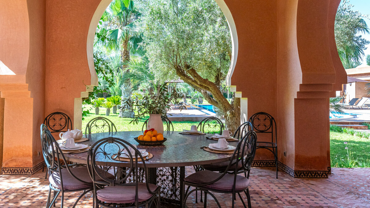 La villa est située dans un quartier calme de la Palmeraie, à proximité de Marrakech.