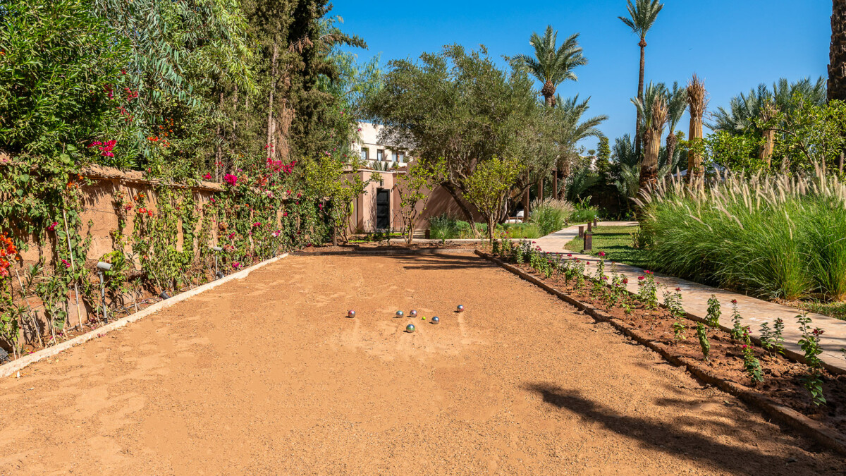 Charmante propriété privée au coeur d’un splendide jardin planté de palmiers et d’oliviers dans la Palmeraie de Marrakech, un paradis où vous passerez des vacances de rêve en famille ou entre amis. Le lieu comprend trois maisons séparées de quelques mètres chacune et 5 chambres au total, une piscine privée de 20 mètres, un court de tennis en terre battue, un jardin aménagé, un boulodrome et un potager.