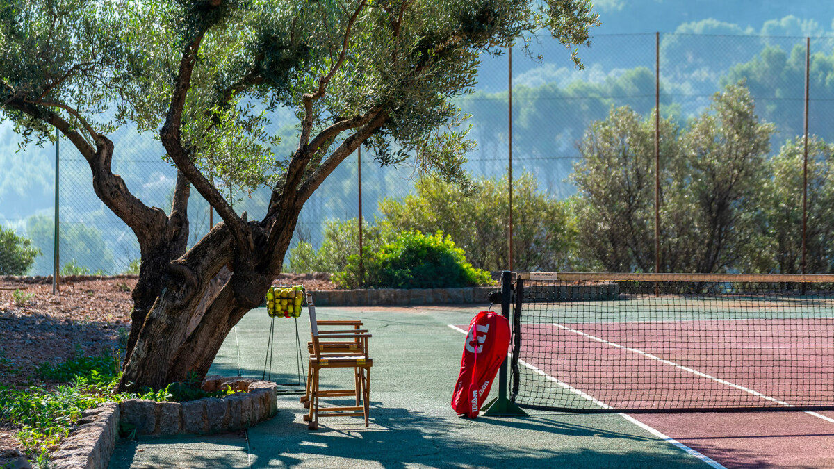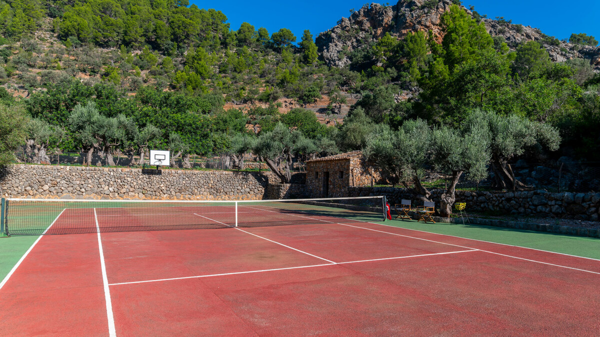 Tennis court at a comfortable distance from the house through the olive grove with wonderful views of Sóller from a distance with its own little house with WC.