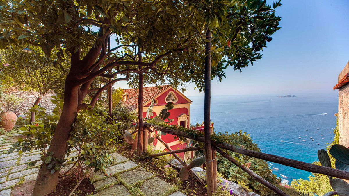Le terrain comprend un jardin pavé de pierre volcanique traditionnelle du Vésuve et des parterres de fleurs plantés d’agrumes, de figuiers et de grenadiers.