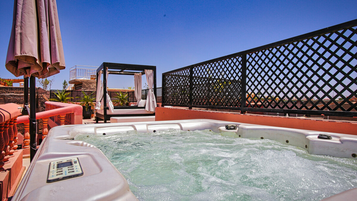 Vous serez également charmés par la belle terrasse de 250m2 qui occupe le toit du Riad. Celle-ci est équipée d’un grand salon marocain, d’un bar et d’une cuisine ouverte.