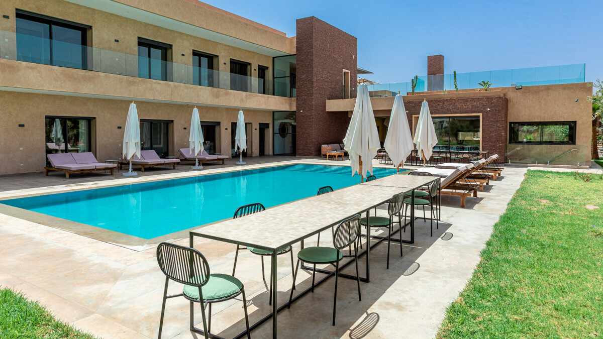 Vous serez charmés par cette belle villa située en front de golf, à seulement 10 minutes de Marrakech. Vous serez à proximité des célèbres Golfs Amelkis 1 & 2 et du Golf Royal, et pourrez profiter d’une charmante vue dégagée sur les environs. Magnifiquement équipée, la propriété offre notament une piscine chauffée, un ascenseur, et un hammam. Avec ses 7 spacieuses chambres, ses espaces de vie raffinés, et ses nombreuses commodités, cette demeure est parfaite pour un délicieux séjour au Maroc.