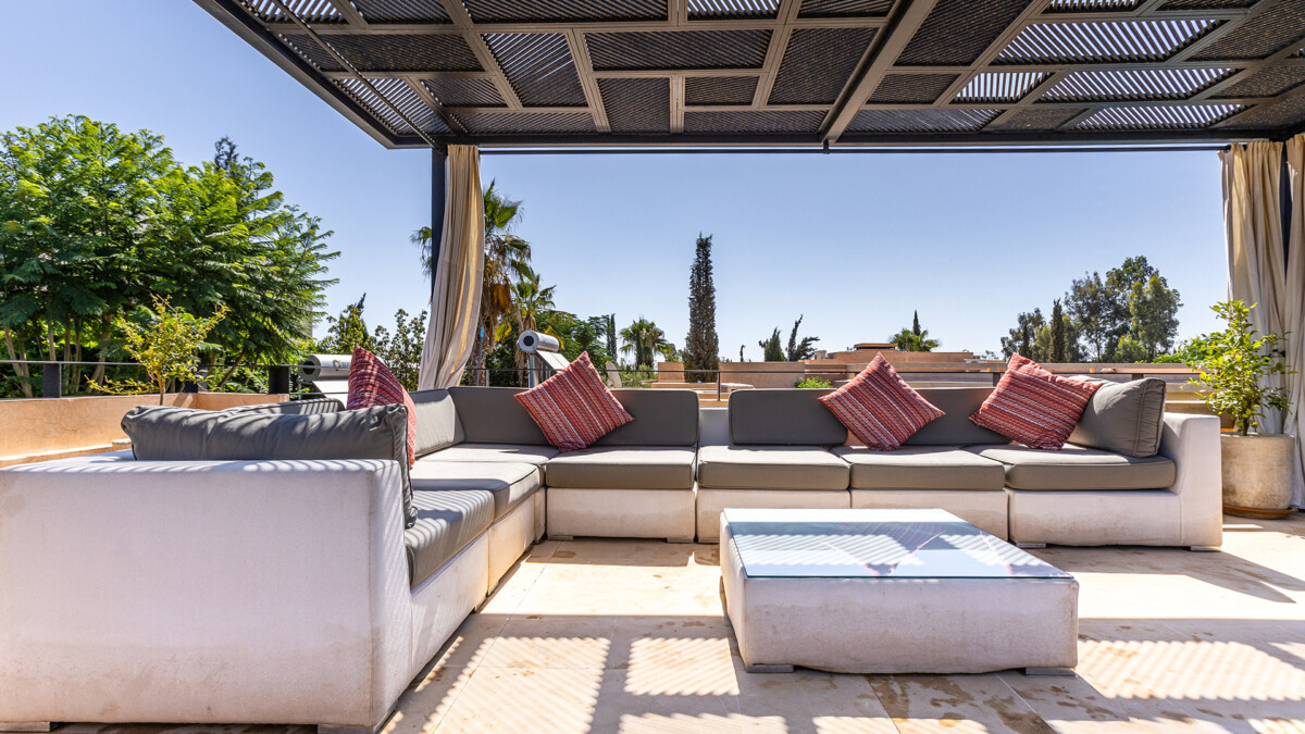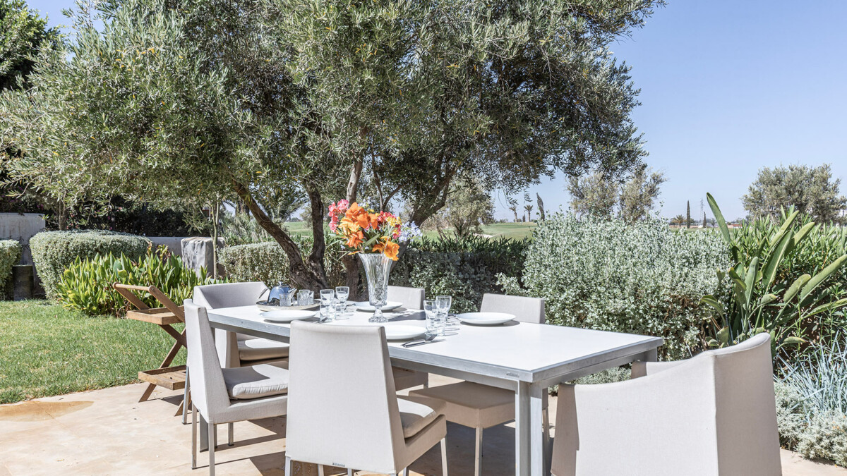 Les vacanciers pourront pleinement profiter de la vie de plein air grâce au joli jardin, à la salle à manger extérieure et au superbe Roof top couvert offrant une vue panoramique sur le golf et l’Atlas.