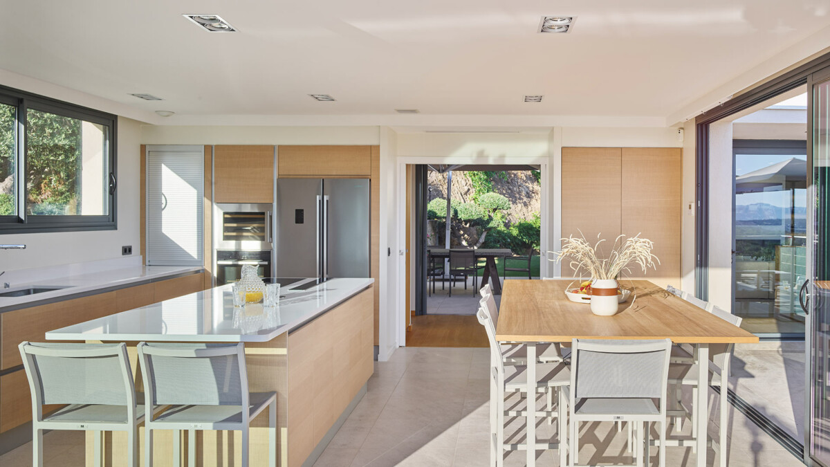 L’intérieur de la maison est conçu pour la convivialité et le bien-être, avec des espaces ouverts et lumineux. La cuisine moderne est équipée pour satisfaire vos envies culinaires, tandis que le salon offre un cadre confortable pour se détendre. La grande terrasse, quant à elle, crée un lien fluide entre l’intérieur et l’extérieur.