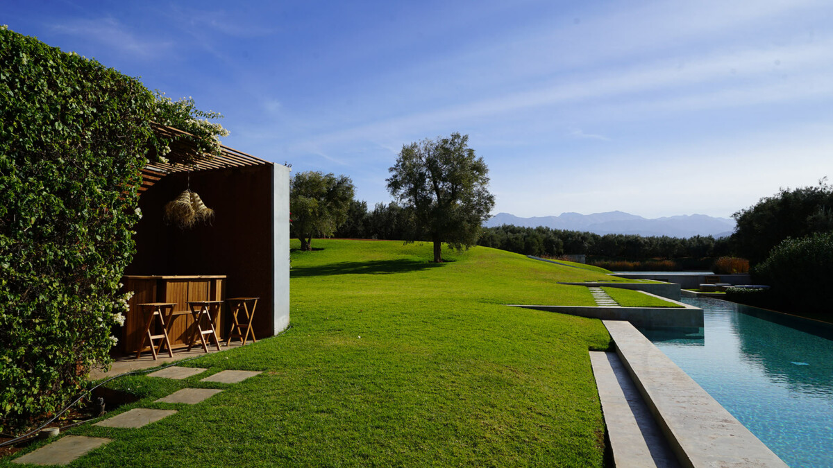 Cette villa nouvellement construite est située à 20 km au sud de Marrakech. C’est un chef-d’œuvre de « land art » où le paysage environnant et la structure architecturale de la maison sont inextricablement liés. Il s’agit d’un refuge vraiment unique où l’intimité peut être appréciée au maximum. Bâtie sur 4 ha de terrain, la villa bénéficie d’une vue splendide sur les sommets enneigés de l’Atlas. La propriété est en parfait état et est prise en charge par son personnel permanent.
