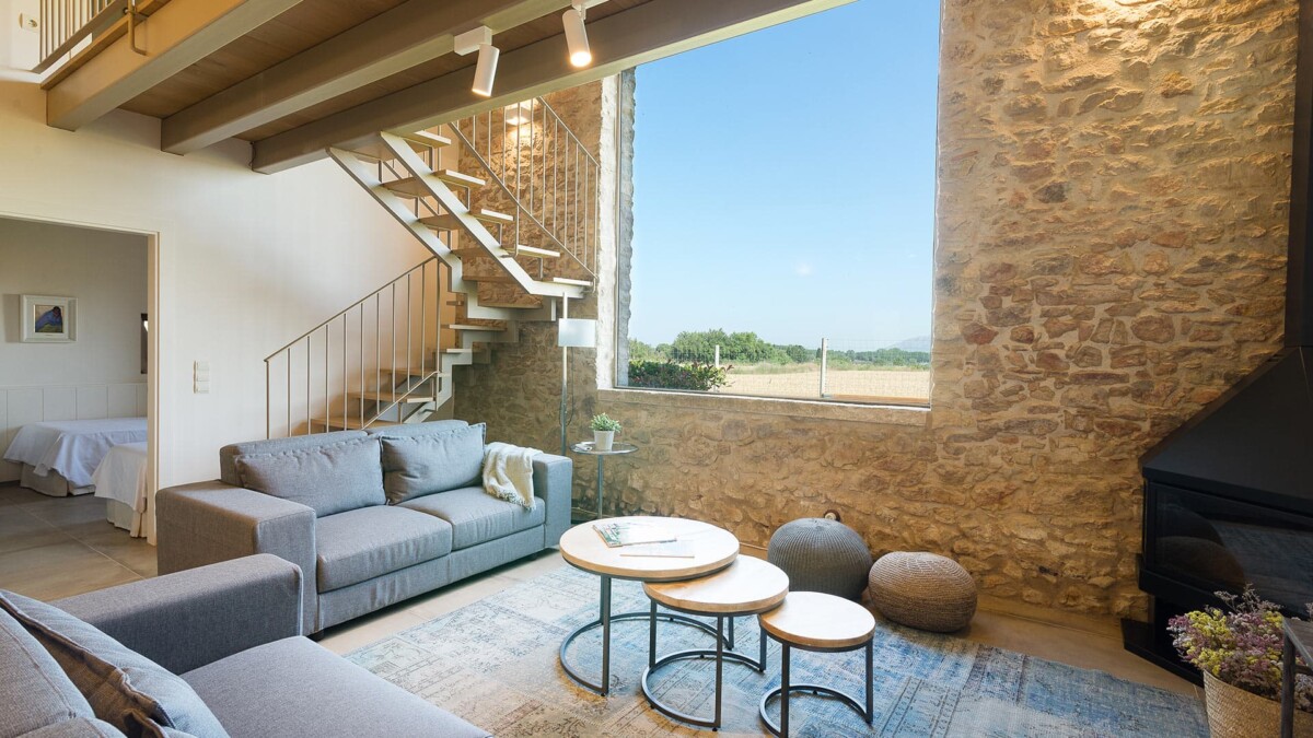 Comme la maison principale, elle dispose d’un spacieux salon chaleureux avec cheminée et table de jeux, de grandes baies vitrées offre une magnifique vue sur la plaine de l’Emporda et du Montgri.