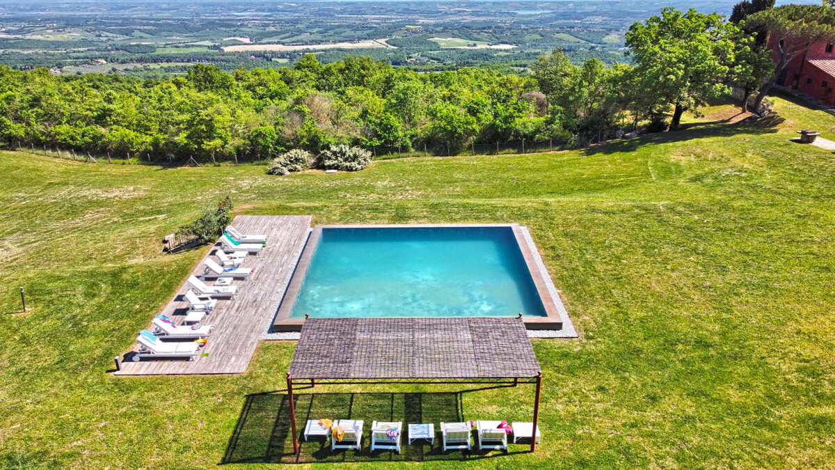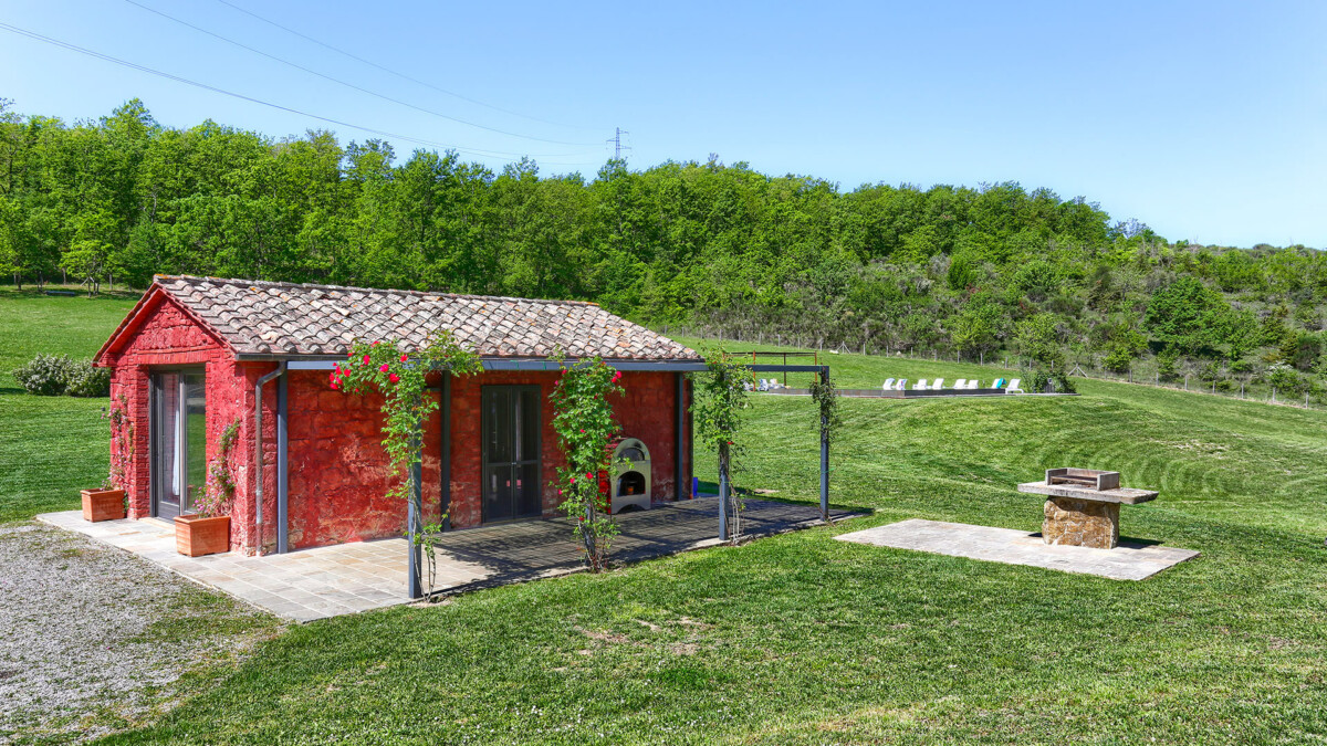 Two story house located in 4 hectares of private ground. The villa offers 6 double rooms with private bath, a private garden and swimming pool, patio and dining room with pizza oven and multiple spaces to relax in one of the most beautiful places in the Italian Tuscany.