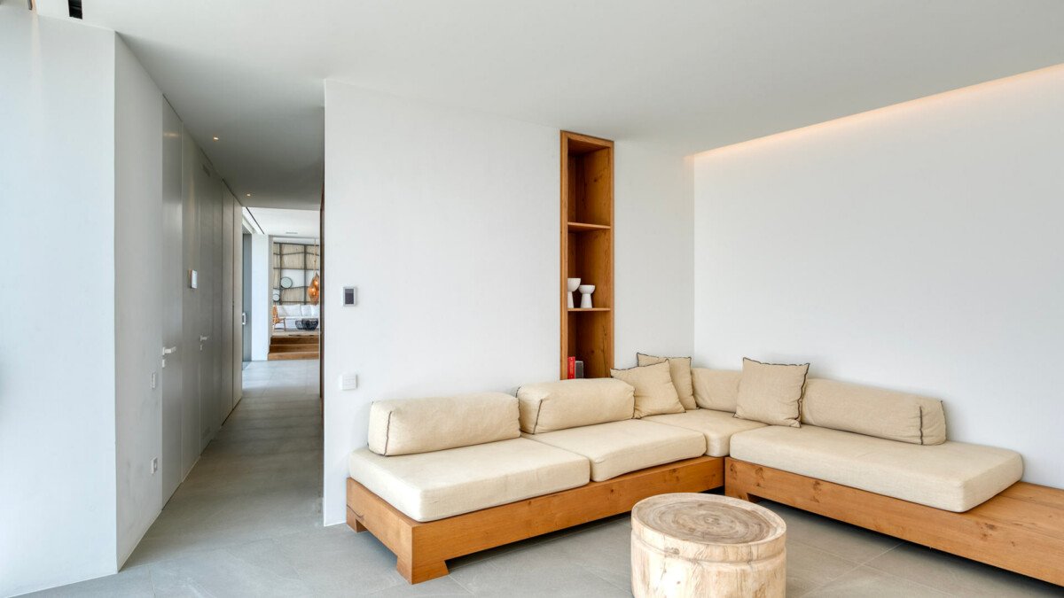 As you enter the main house, you are welcomed by a fully equipped open-plan kitchen, a lounge area (with TV and home cinema), a dining space (seating for up to 10), and a living room with built-in sofas. There is also a guest toilet, a wine cellar and well-appointed bedrooms with en suite bathrooms. A fully-equipped gym adds a touch of well-being and entertainment.