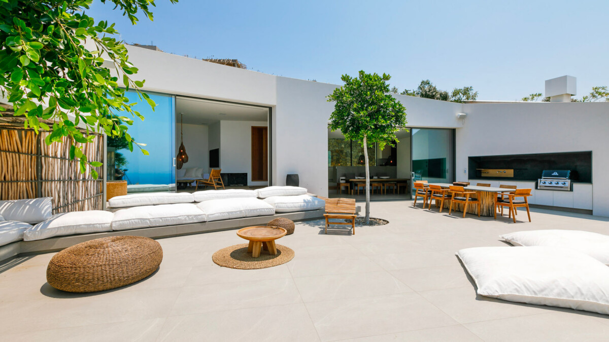 The exterior of the villa is equally impressive, with a 20 x 4m infinity pool (which can be heated on request and at an additional cost) surrounded by sun loungers, a large outdoor lounge area, an outdoor home cinema and an outdoor kitchen complete with built-in gas barbecue. The property is dotted with various relaxation areas offering breathtaking sea and sunset views, as well as private parking areas.