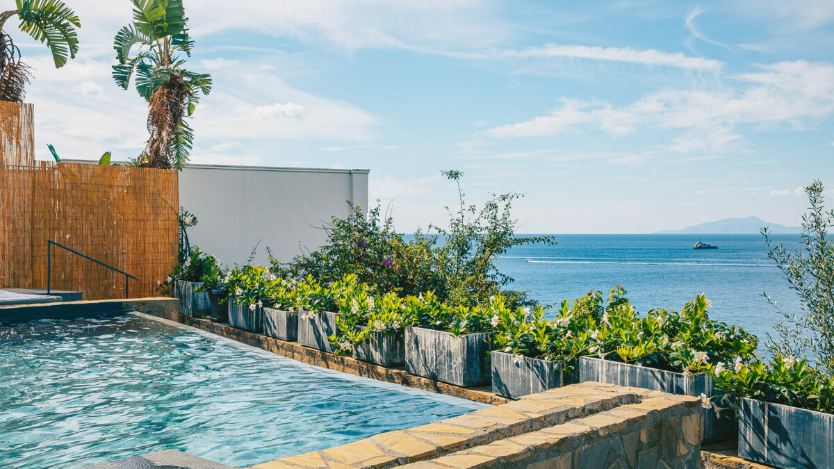 Villa Marcigliano offre une belle piscine donnant sur la mer, avec hydro massage et une douche en cascade pour massage des cervicales.