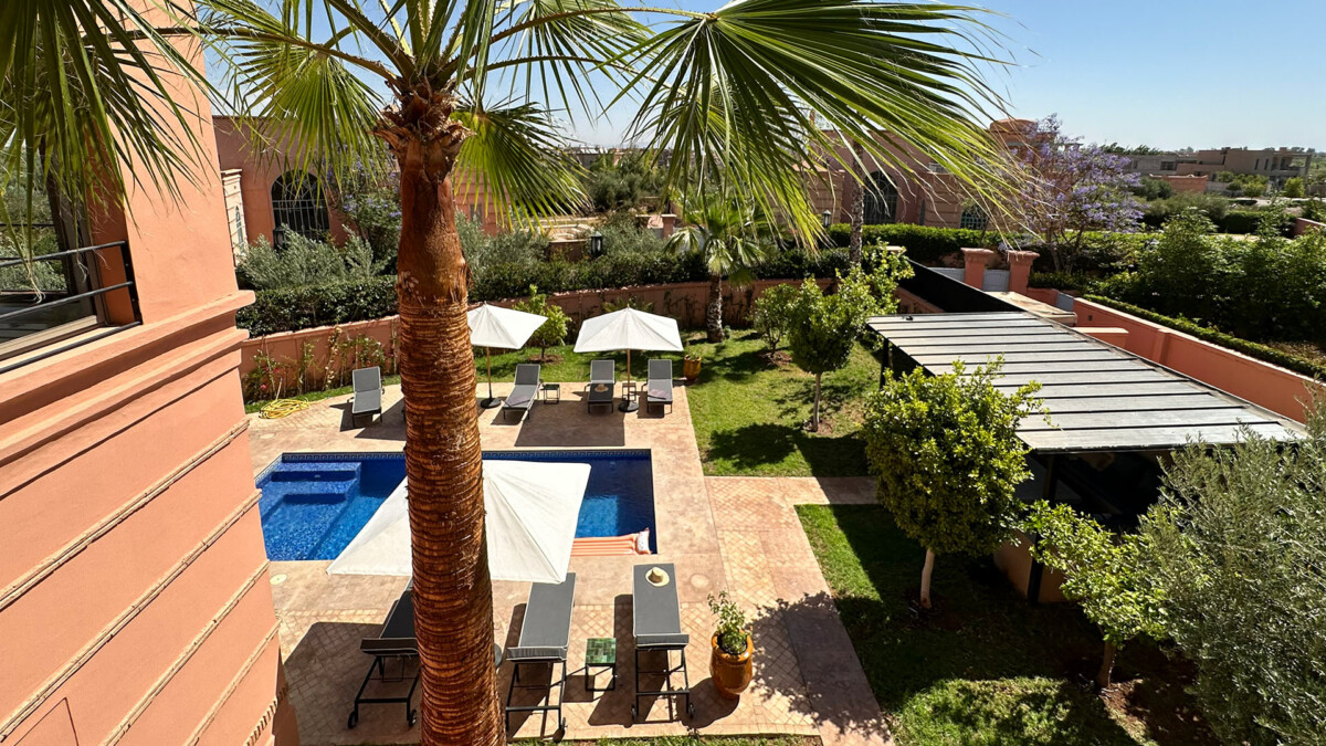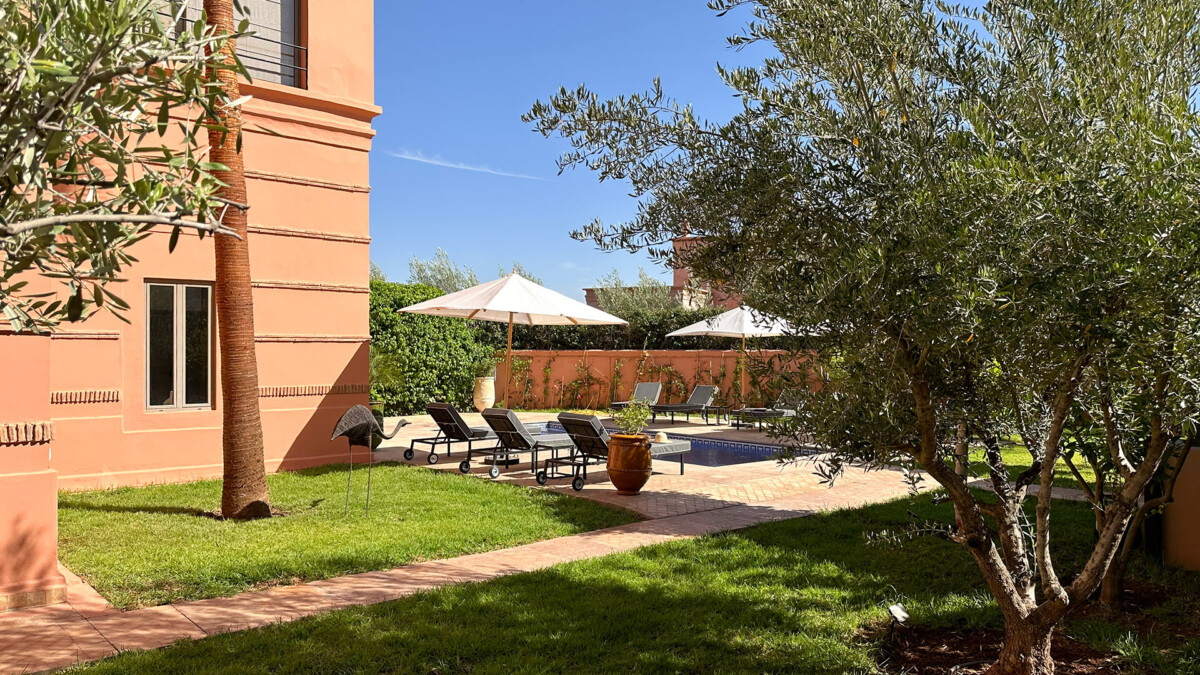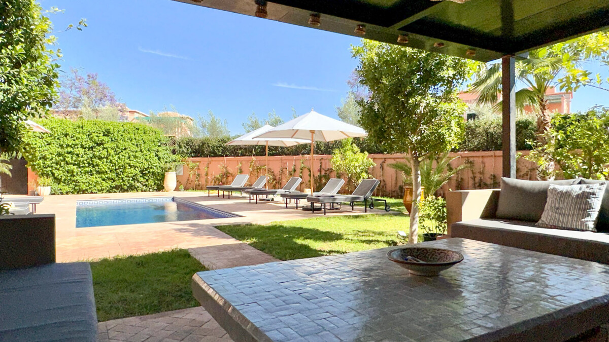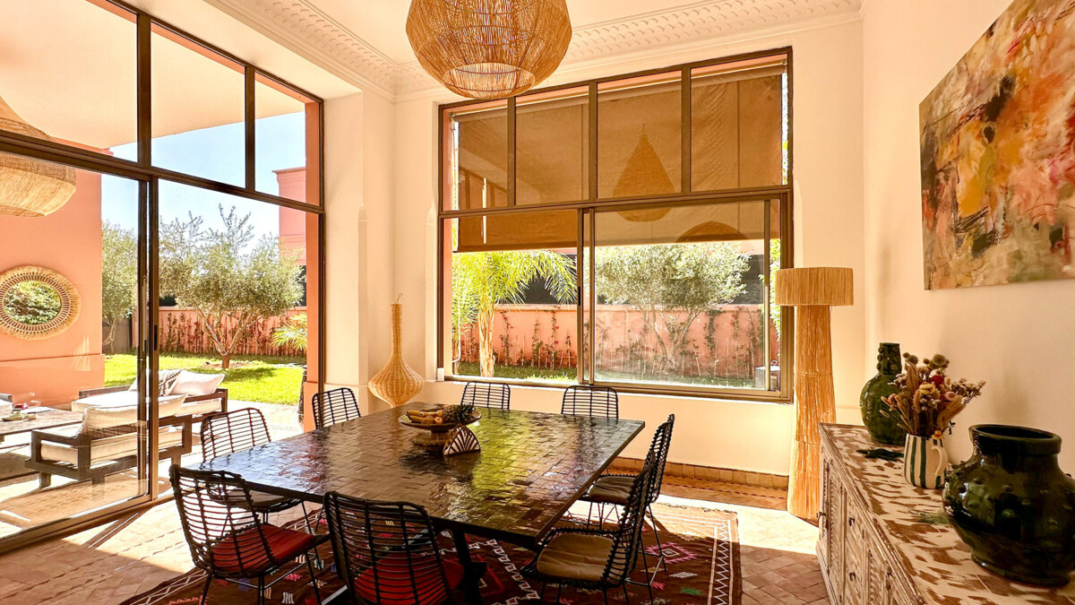 Découvrez cette belle villa de 400 m², idéalement située sur le prestigieux golf d’Amelkis, à proximité des golfs Royal et Al Maaden et à seulement 10 minutes du centre-ville de Marrakech. Pouvant accueillir jusqu’à 8 personnes, cette demeure avec piscine et jardin, bénéficie aussi des services d’une gouvernante dédiée. Entre son emplacement privilégié, ses intérieurs raffinés et ses beaux extérieurs, cette villa vous promet un séjour mémorable au Maroc.