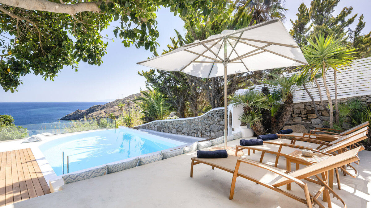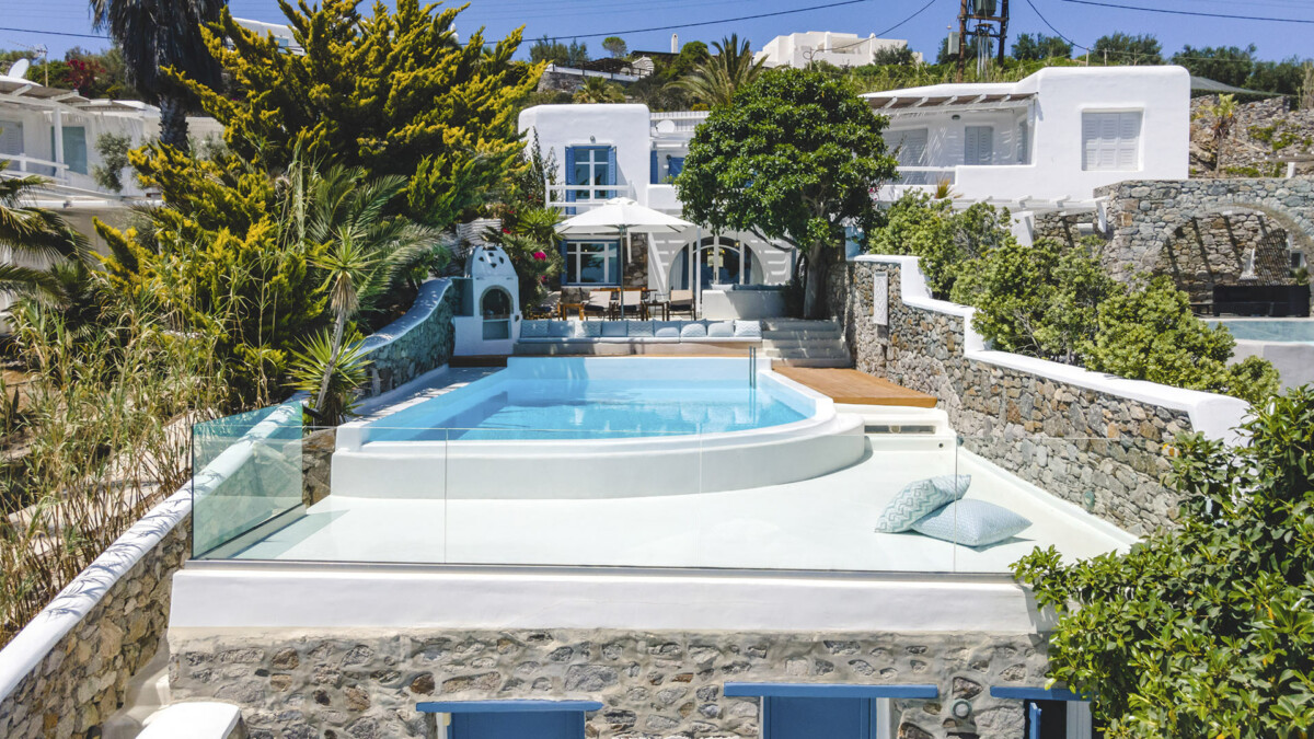 A Mykonian traditional architecture blended carefully with modern features and infrastructure. Villa Rival is a private luxury estate located on a unique seaside spot at the exclusive southern part of Mykonos, Aleomandra. The property offers magnificient views, overlooking the Aegean Sea and Delos Island.