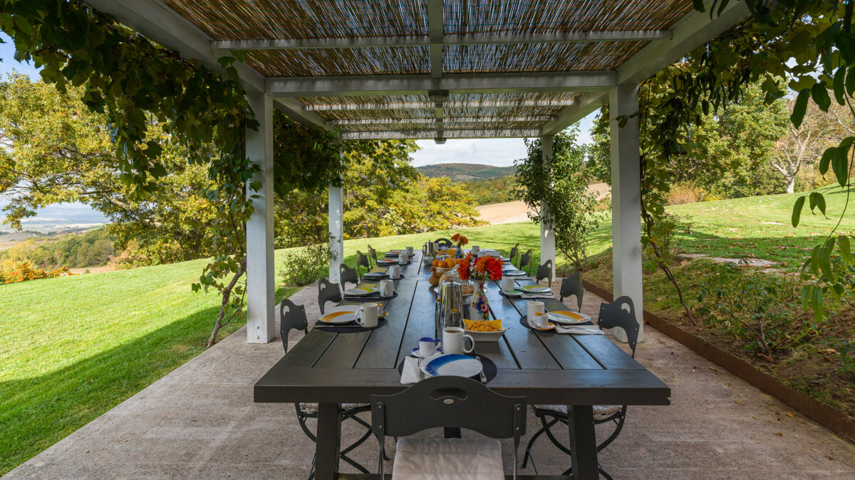 The villa is situated in a 1700 acre estate and surronded by roads that link the famrhouses, providing a perfect space for silent walks on nature only broken by the sining of birds.