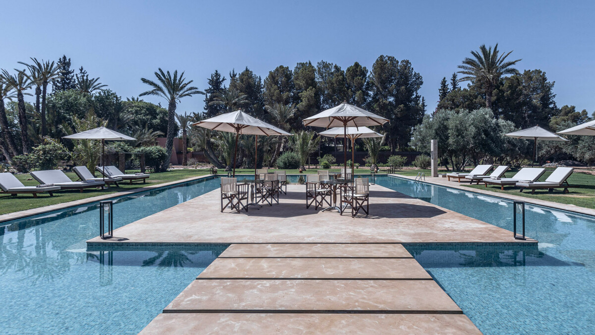 Une belle piscine (25 x 12m – Profondeur : 0.8 à 1.65m), entourée de chaises longues et de parasols, offre un endroit idyllique pour se rafraîchir et se détendre. Un bar intégré et un îlot situés dans la piscine ajoutent une touche de luxe supplémentaire et sont parfaits pour les moments de convivialité. Le parc de la villa, s’étendant sur un hectare et demi, est un véritable écrin de verdure où vous rencontrerez des palmiers majestueux, de nombreux oliviers, et des bougainvilliers colorés. Les deux grandes terrasses, équipées de mobilier confortable, sont des magnifiques espaces pour profiter des repas en plein air, tout en admirant la beauté du jardin dans un silence absolu.