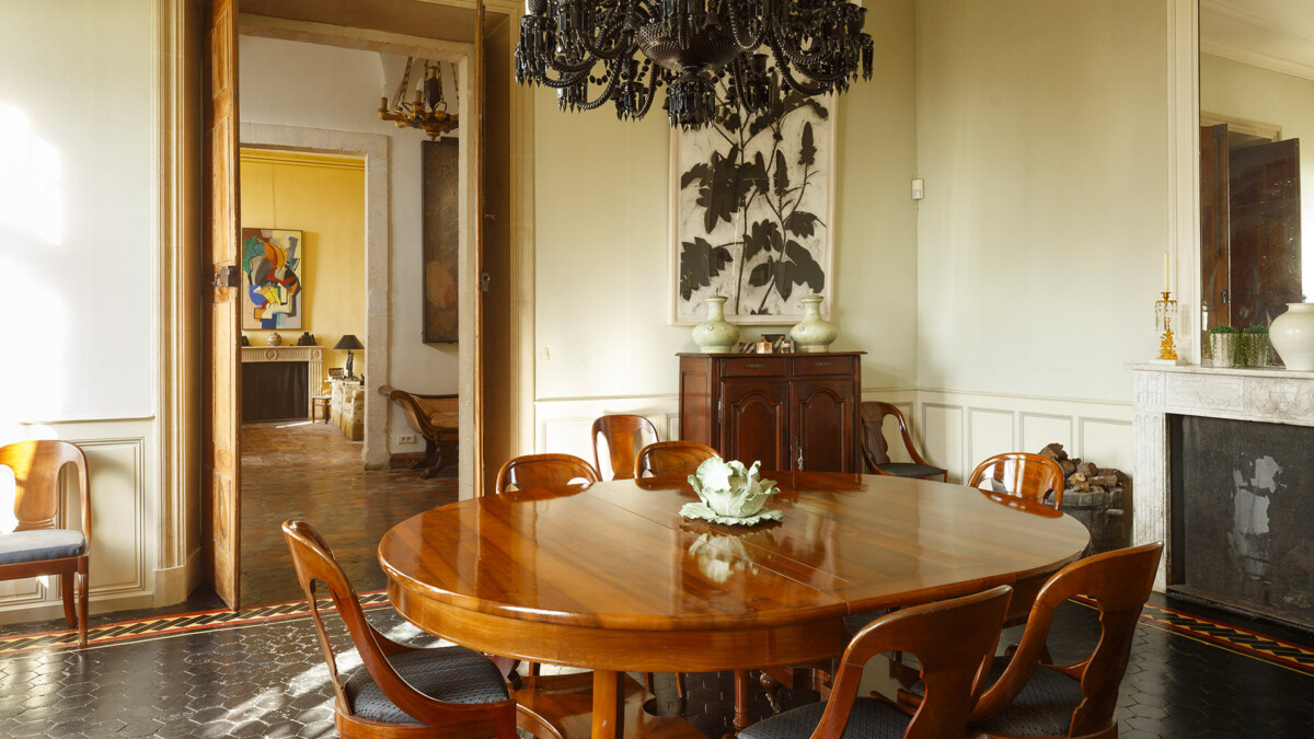 Les repas deviennent des moments de joie et de convivialité sur la terrasse extérieure ou dans le pool house devant la piscine. L’hiver, on préfèrera s’installer dans la vaste salle à manger ou mieux encore, au coin du feu brûlant dans la cheminée monumentale digne d’un château.