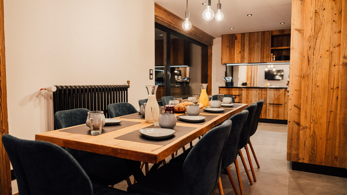 Rénové en 2022, l’appartement marie élégamment le bois et la pierre avec des équipements modernes.