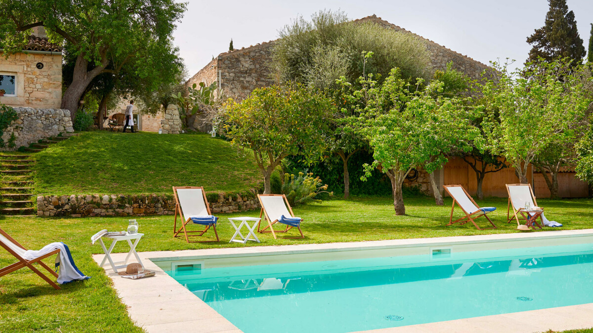 Les extérieurs disposent d’une grande piscine de 18 mètres de long équipée de transats, de parasols, de salles de bains et d’un magnifique solarium entouré d’orangers et de citronniers. 6000 m2 de jardins relaxants, terrasses, vergers colorés et un magnifique potager à disposition des hôtes.