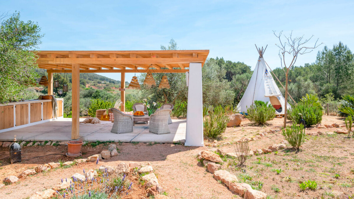 Cette magnifique villa de six chambres située à Ibiza, à proximité du dynamique centre de Santa Gertrudis, offre une piscine d’eau salée chauffée et de multiples espaces de détente ensoleillés. Entourée de vallées de pins et de palmiers, créant un cadre paisible et apaisant, la propriété bénéficie d’un emplacement idéal garantissant une intimité sans pareille. Conçue pour se divertir et se relaxer, le domaine offre un vaste jardin tropical doté d’une cuisine d’été, d’un tipi, d’un terrain de pétanque, d’une table de ping-pong et d’un trampoline.
