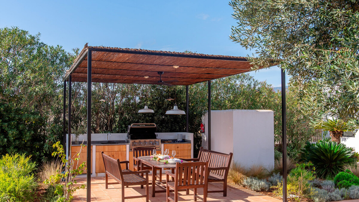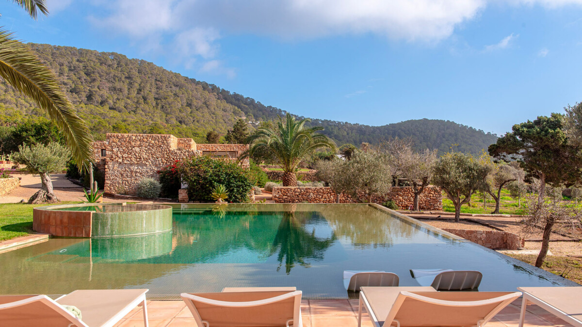 Les extérieurs invitent à la détente et à la contemplation. Jardin bien aménagé et plantes variées créent une ambiance apaisante, tandis qu’une piscine à débordement permet de profiter du climat agréable d’Ibiza. Des terrasses couvertes et ouvertes offrent différents espaces pour les repas en plein air, que vous vouliez vous relaxer à l’ombre ou vous exposer au soleil. Chacune de ces zones est pensée pour offrir confort et bien-être, tout en profitant d’une vue dégagée.