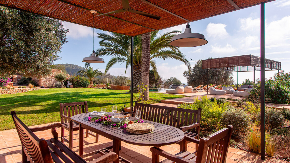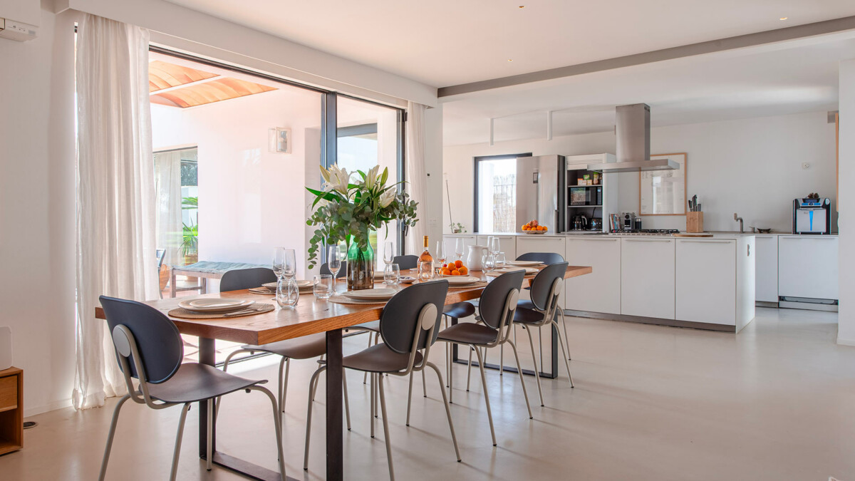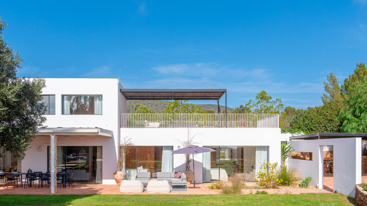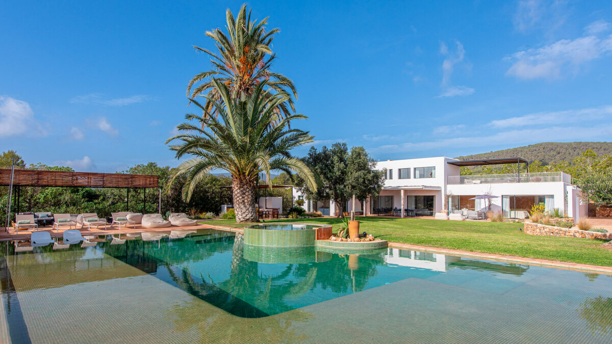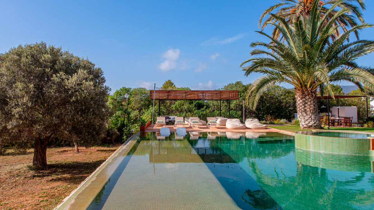 Can Olivar située dans le quartier recherché de Cala Jondal à Ibiza, est une maison moderne avec des installations écologiques telles que des panneaux solaires. Elle combine élégance contemporaine et confort, avec vue sur les montagnes environnantes, ainsi qu’un aperçu de l’île de Formentera au loin. À seulement 7 minutes de l’aéroport, elle est aussi proche de plusieurs belles plages et restaurants renommés, offrant ainsi un cadre idéal pour des vacances apaisantes et enrichissantes. Dotée d’équipements tels qu’une piscine et une salle de sport, la villa est parfaitement conçue pour accueillir familles et groupes.