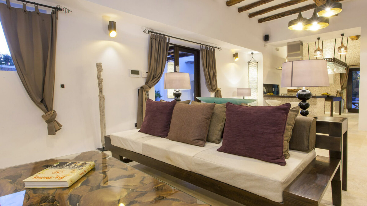L´aéroport se trouve à 35 minutes de distance en voiture et la ville d´Ibiza à 20-25 minutes.