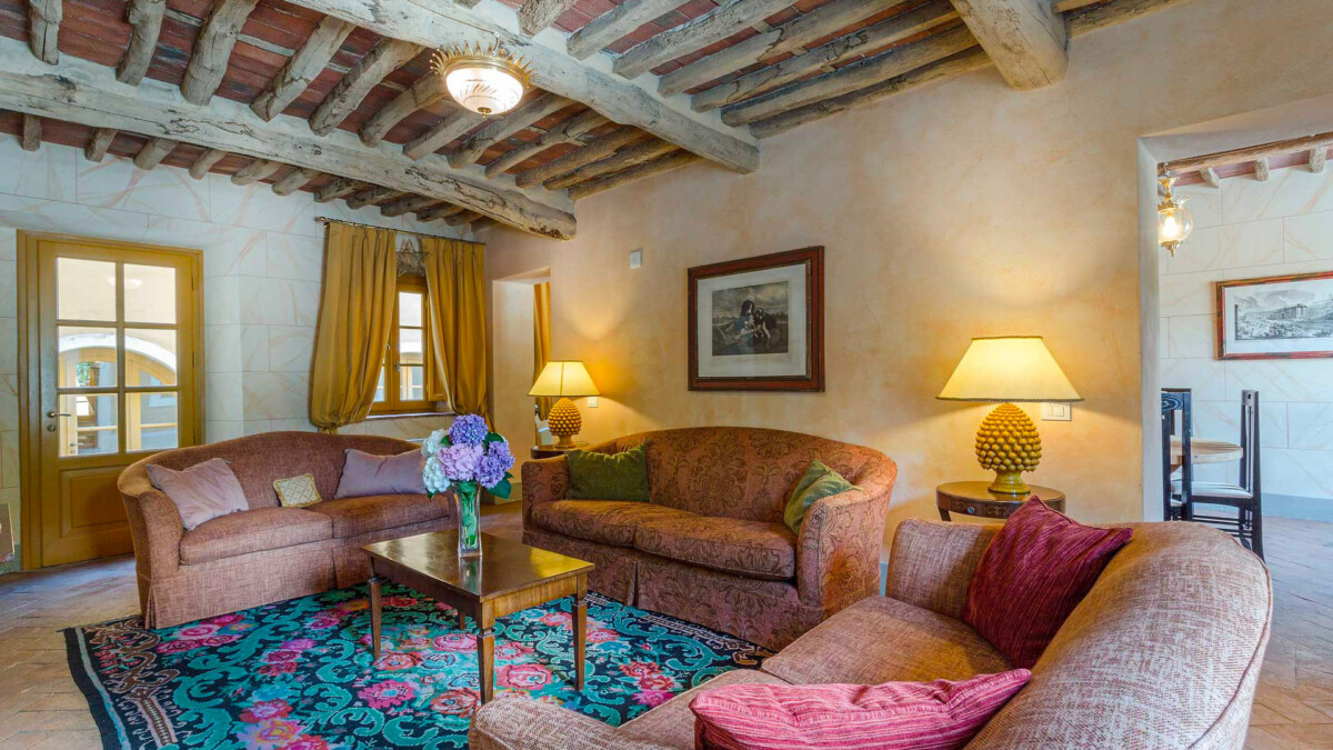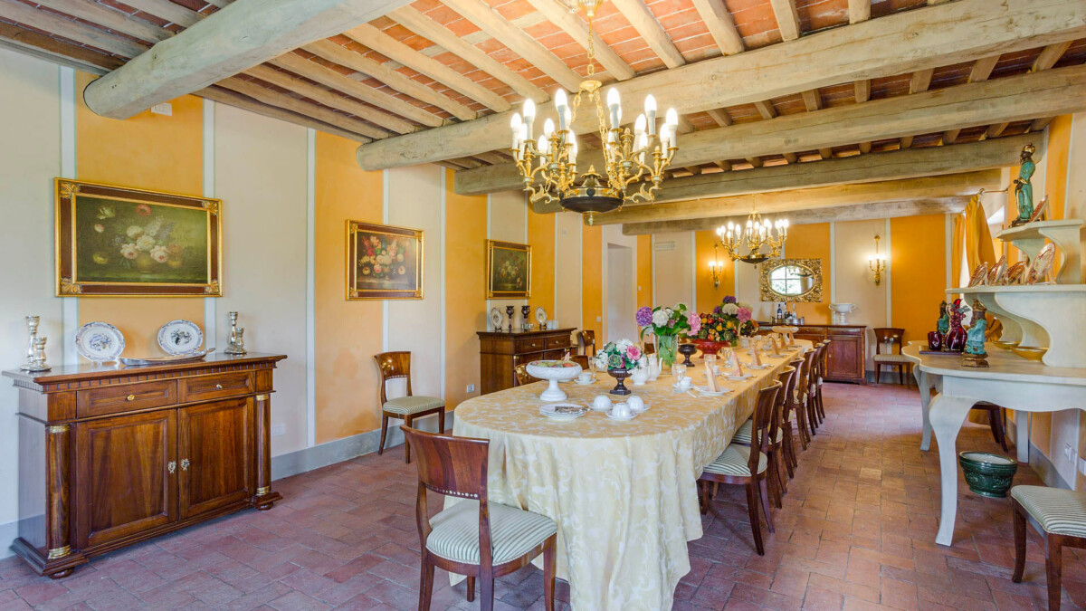 Les pièces communes comprennent un salon de télévision, un salon, une cuisine toscane typique, une grande salle à manger et un jardin d’hiver.