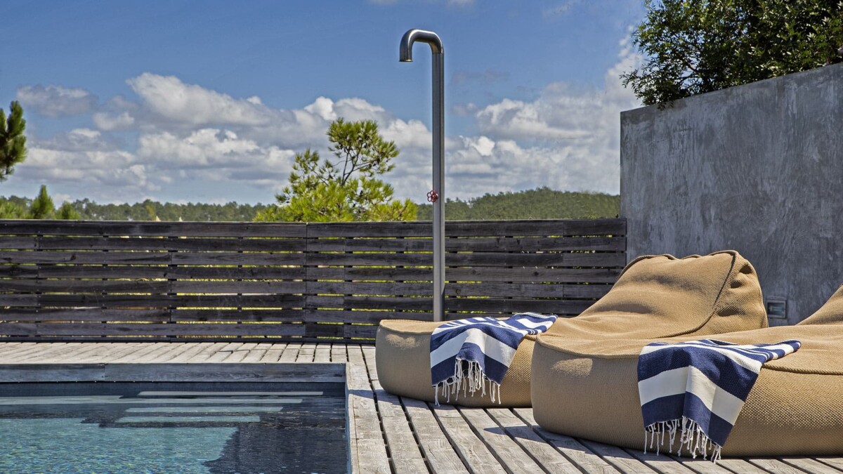 Exceptionnelle maison de plain-pied, la Casa do Pego est située à 400 mètres de la plage de Pego, près de Comporta. Cette villa au design luxueux émerge des dunes pour accueillir jusqu’à six personnes et leur faire profiter d’une piscine privative chauffée, d’une terrasse ensoleillée ainsi que d’un jardin et d’une vue imprenable. La simplicité de cette demeure recèle des trésors de luxe. Son architecture épurée mêlant à la perfection béton, baies vitrées, terrasse en pin, ombrages et toit-terrasse, la rend unique dans le paysage. Située à Comporta, un des lieux les plus exclusifs du Portugal, elle n’est qu’à cinq minutes de marche de la plage de Pego ; reconnue depuis des années comme l’une des meilleures plages du Portugal grâce à la propreté de son sable et de ses eaux ainsi que par sa facilité d’accès.