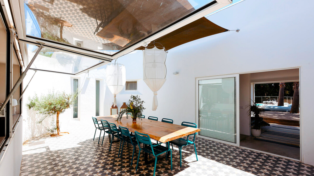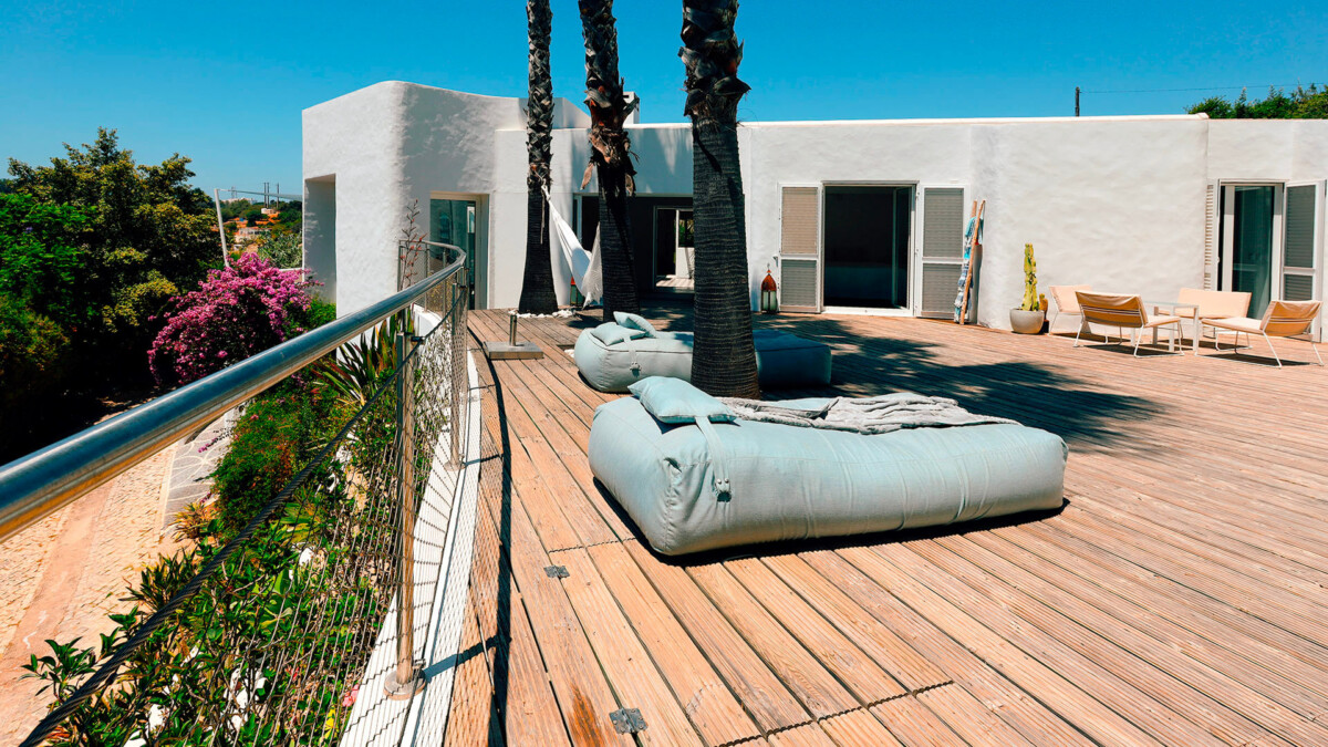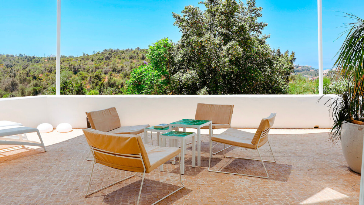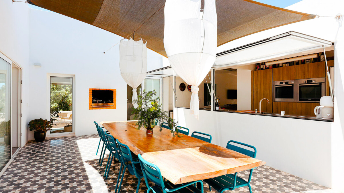 Le patio, qui est littéralement le centre de la villa, dispose d’un sol magnifiquement carrelé avec des carreaux portugais. Ce véritable espace de convivialité comporte un barbecue fixe et une grande table de repas pouvant accueillir jusqu’à 12 personnes.