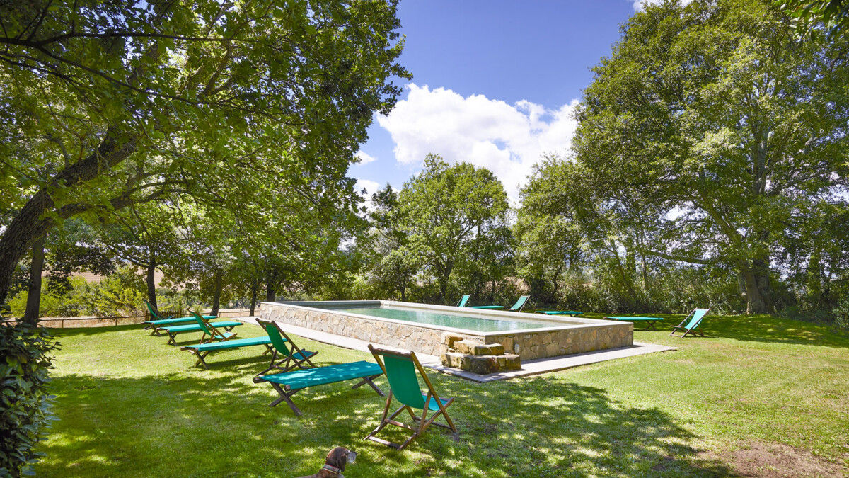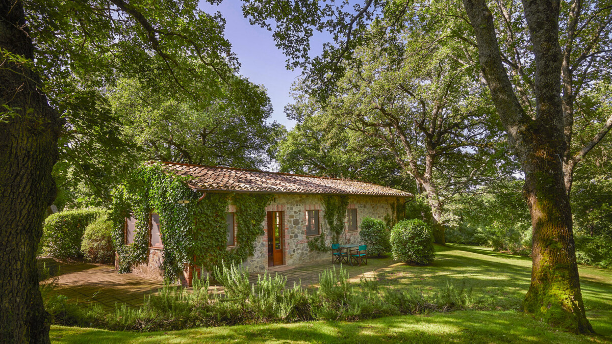 Casa Giuseppe is a 300 m2 house sitting in an opening in a wooded grove and surrounded by old oak trees which blend sun and shade on the lawn in front of the house. Beyond are open fields and views across the valley to the Radicofani fortress on the far-away blue hills. Swimming pool. Capacity : For 10 people (or 14, with the guest house).
