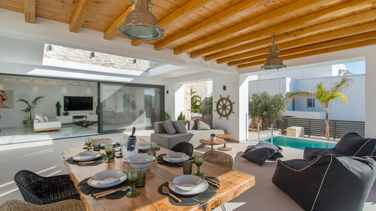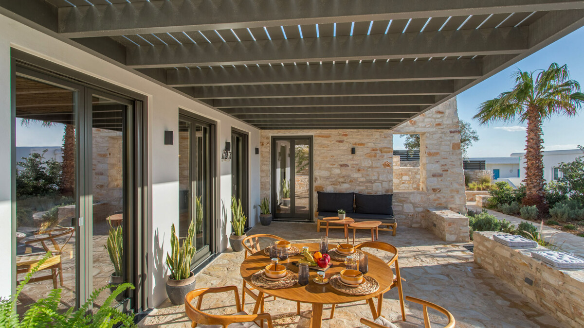 La résidence est située à Piso Livadi. La plage la plus proche est à 120 mètres de la propriété. Pisso Livadi est un joli port de pêche traditionnel sur la côte est de Paros, à quelques kilomètres du village de Marpissa et à 17 km du port principal de Parikia. Certains des meilleurs restaurants de poisson de l’île s’y trouvent, ainsi que de superbes plages, comme la Golden beach, réputée par les amateurs de planches à voiles. La région abrite quelques-uns des villages les plus pittoresques de l’île, qui accueillent tout au long de l’année diverses festivités.
