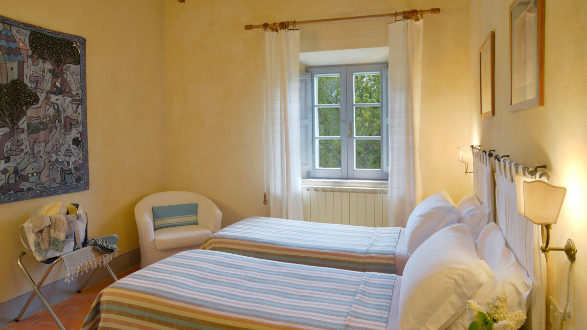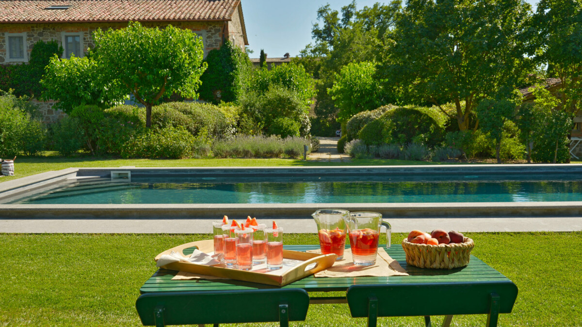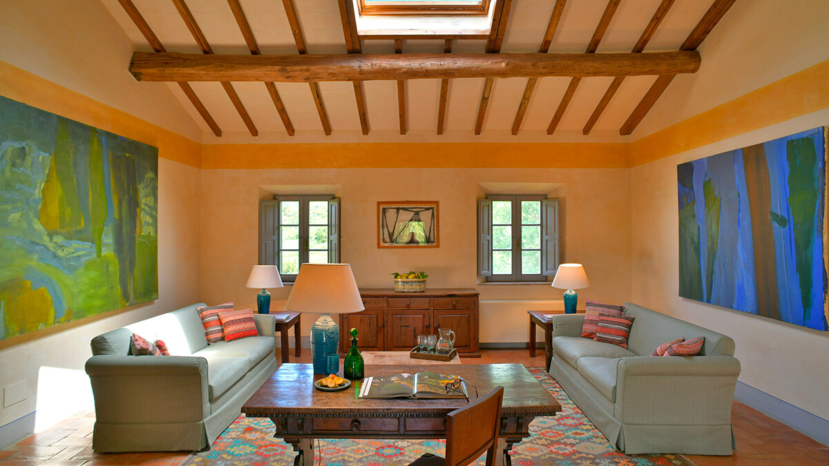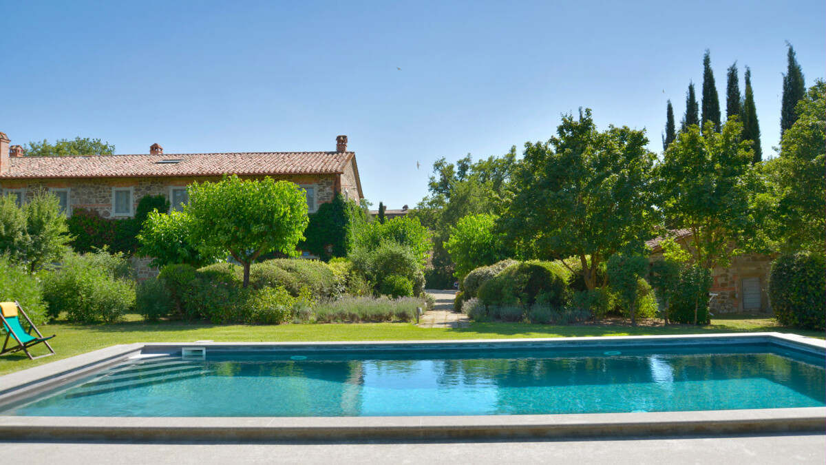 Casa Maria is a large sunny house built in the local stone, overgrown with rambling roses, honeysuckle and ivy, and surrounded by a garden where Mediterranean aromatic plants such as rosemary, sage, lavender and thyme flourish. The pool is set against a backdrop of the typical Siena clay hillocks; wild rose and broom bushes growing in the garden blend into the surrounding countryside.
