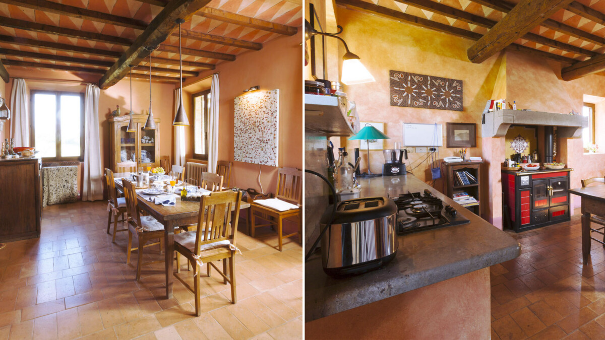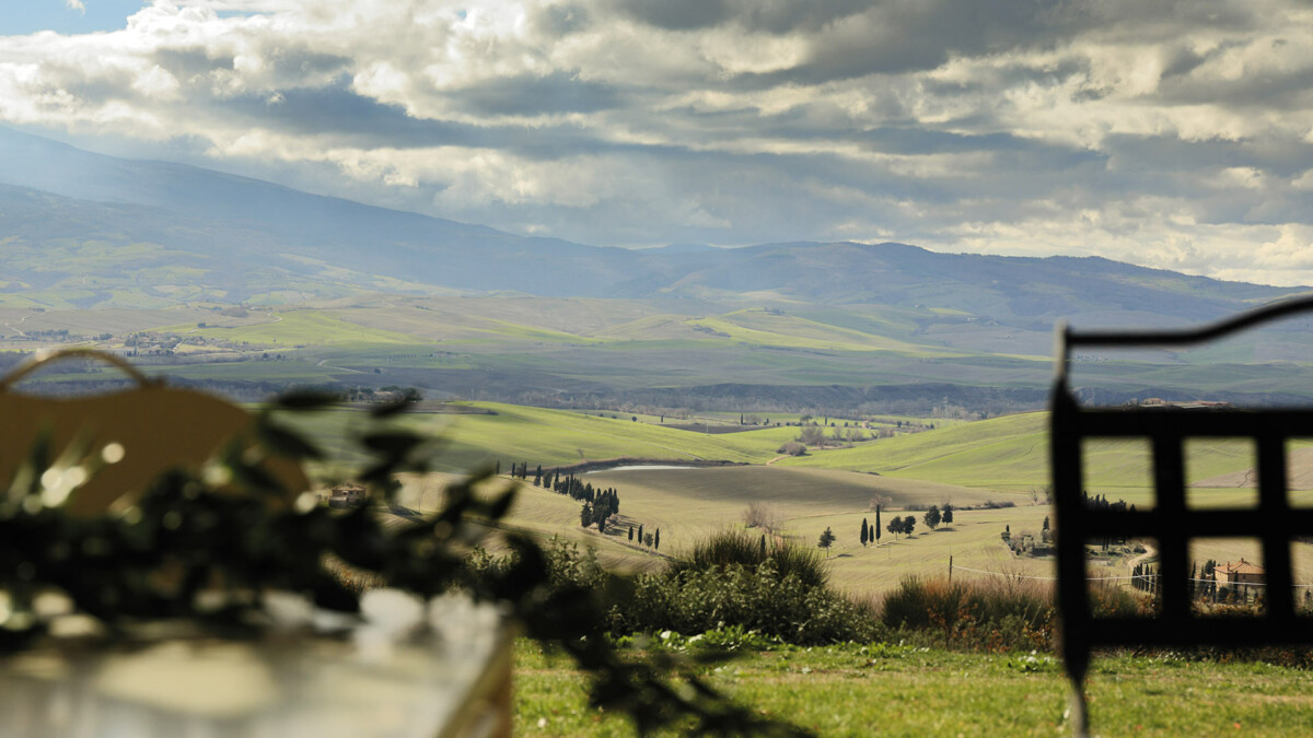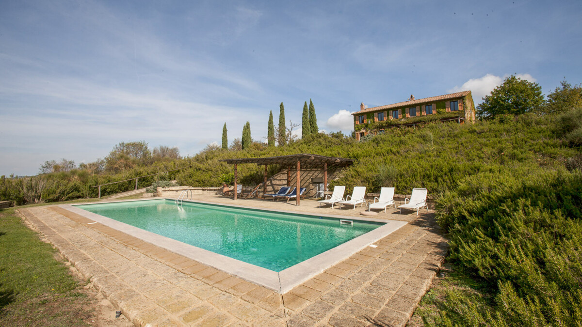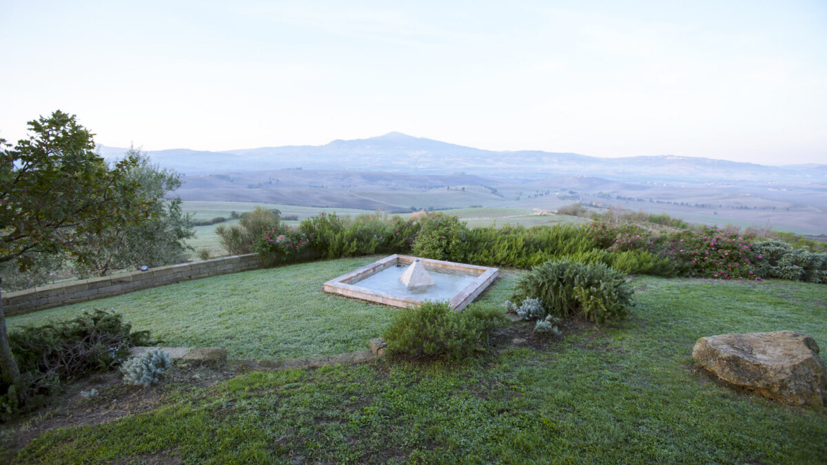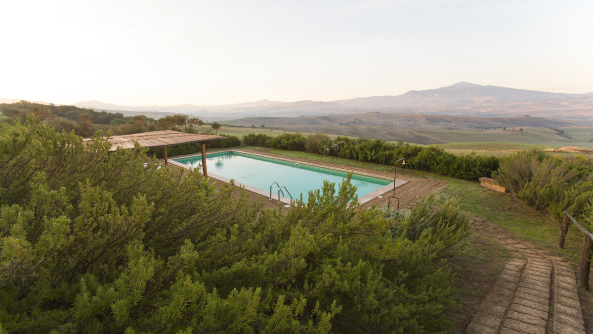 A sea of rosemary surrounds the pool (14 m × 5m), hidden from view, but with a breath-taking view of Mount Amiata.