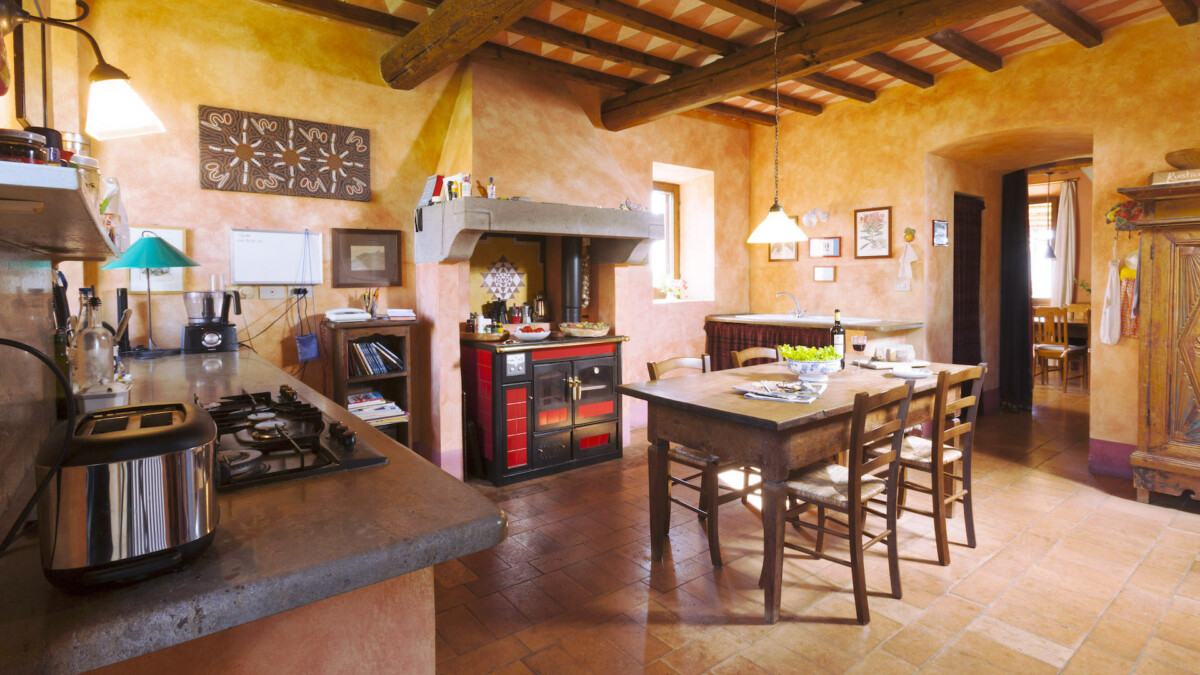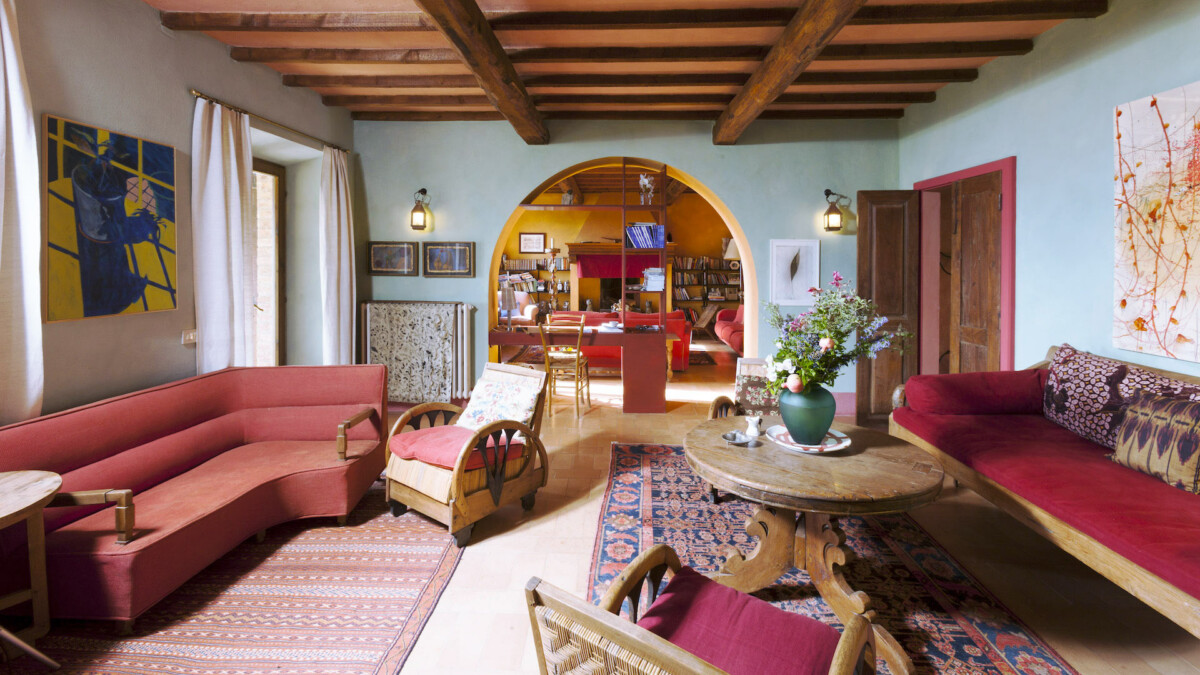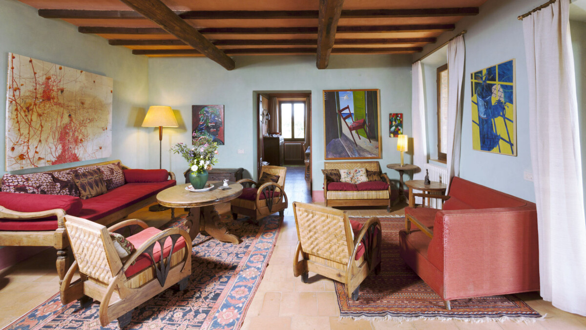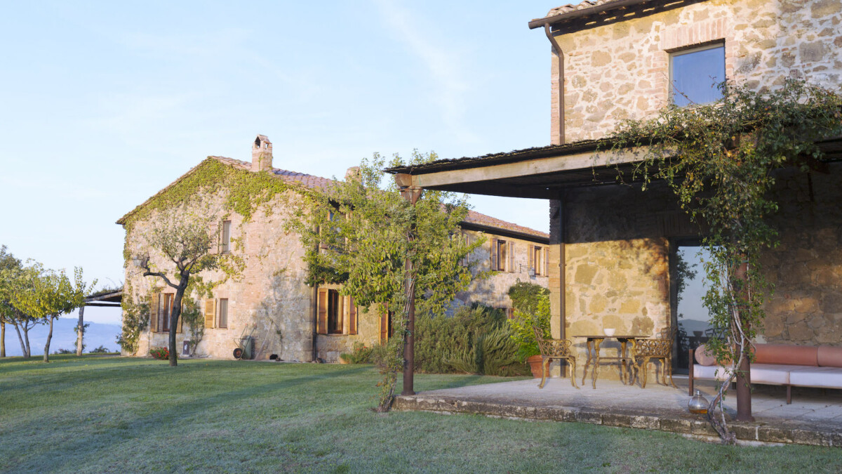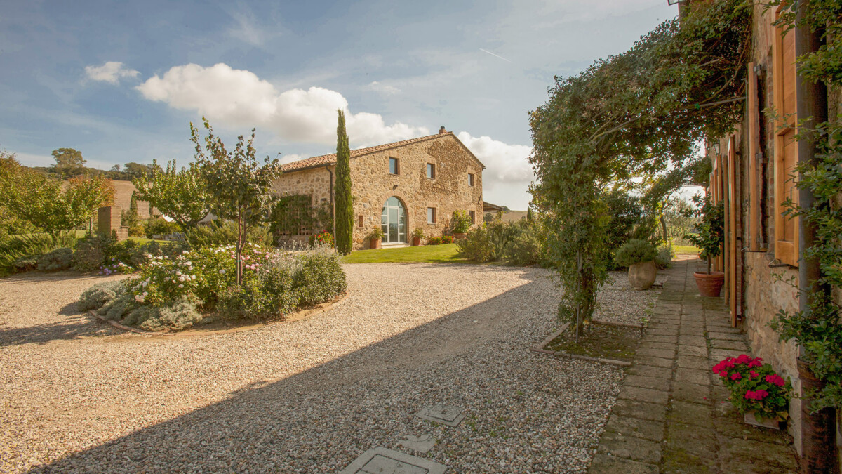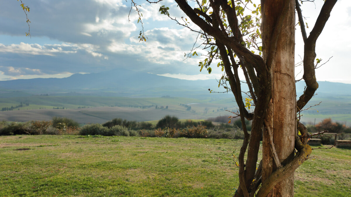 A sea of rosemary surrounds the pool (14 m × 5m), hidden from view, but with a breath-taking view of Mount Amiata.