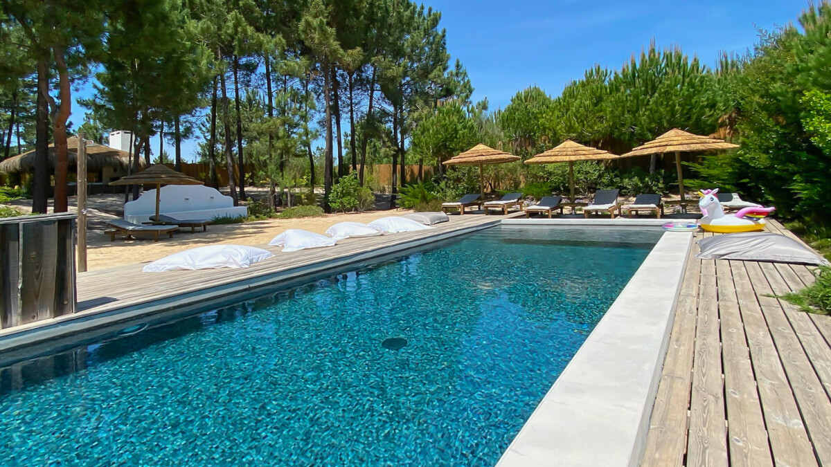 Vous pourrez profiter d’une piscine (16 x 4.5m – Profondeur : 1.4m), des espaces de détente typiques de Comporta, un day bed, une douche extérieure, un barbecue et différentes terrasses.