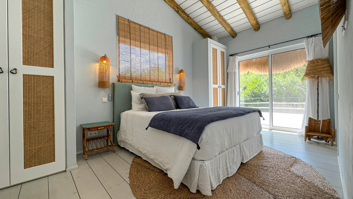 Chambre. La chambre propose 1 lit double 160 cm. Salle de bain privée, avec baignoire, douche. WC dans la salle de bain. La chambre inclut également : climatisation, table de bureau, dressing, terrasse privée, ventilateur.