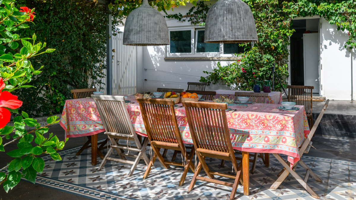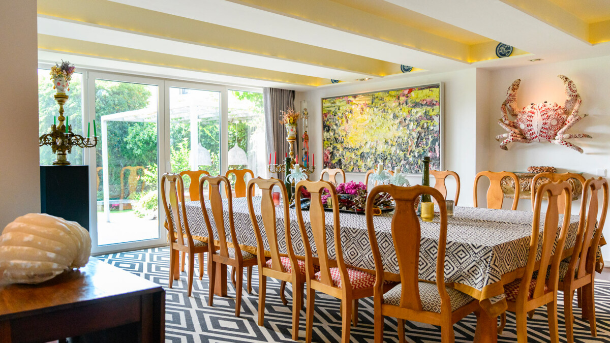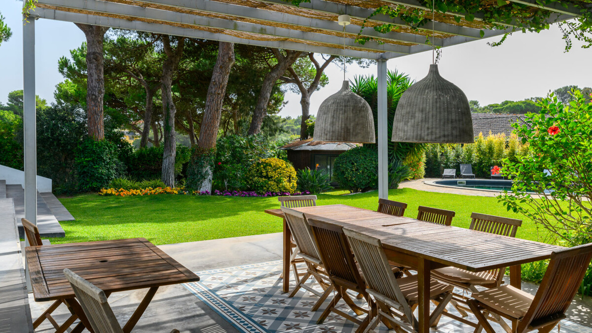 Lorsque vous entrez dans la belle salle de séjour, vous aurez une vue sympathique grâce aux portes vitrées donnant sur le jardin et la piscine. La salle à manger peut accueillir jusqu’à 20 personnes et ouvre sur la terrasse. La cuisine est entièrement équipée.