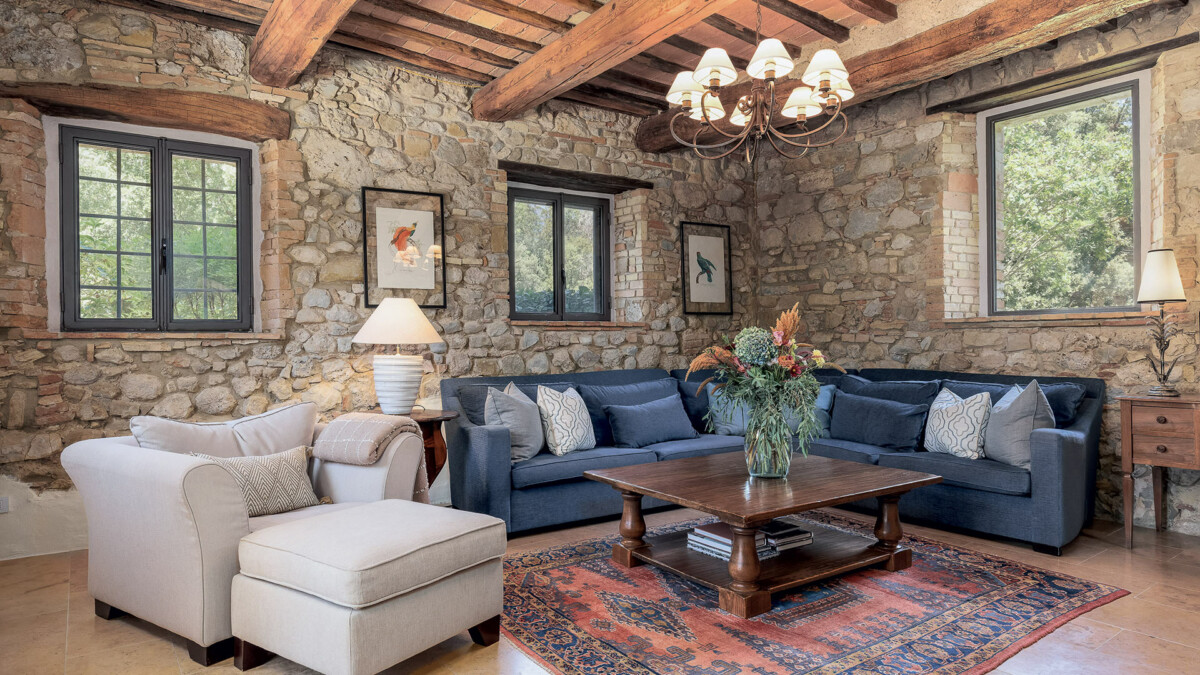 En pénétrant dans la villa vous serez immédiatement séduit par ses murs en pierre et ses poutres au plafond.
