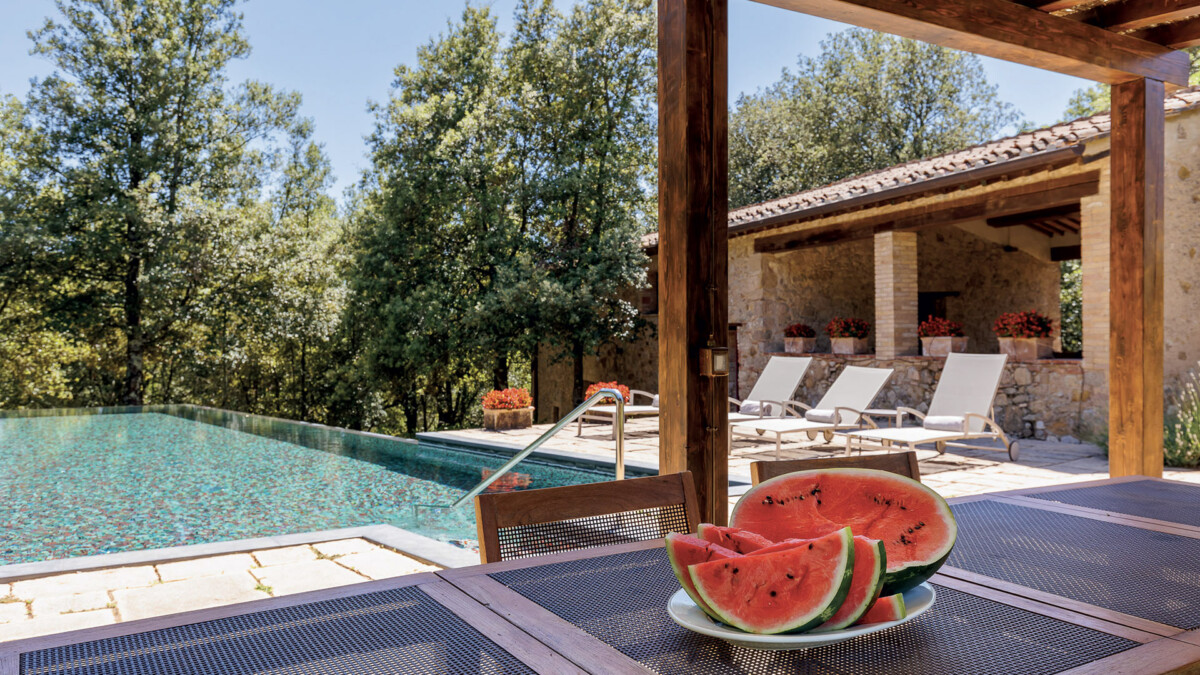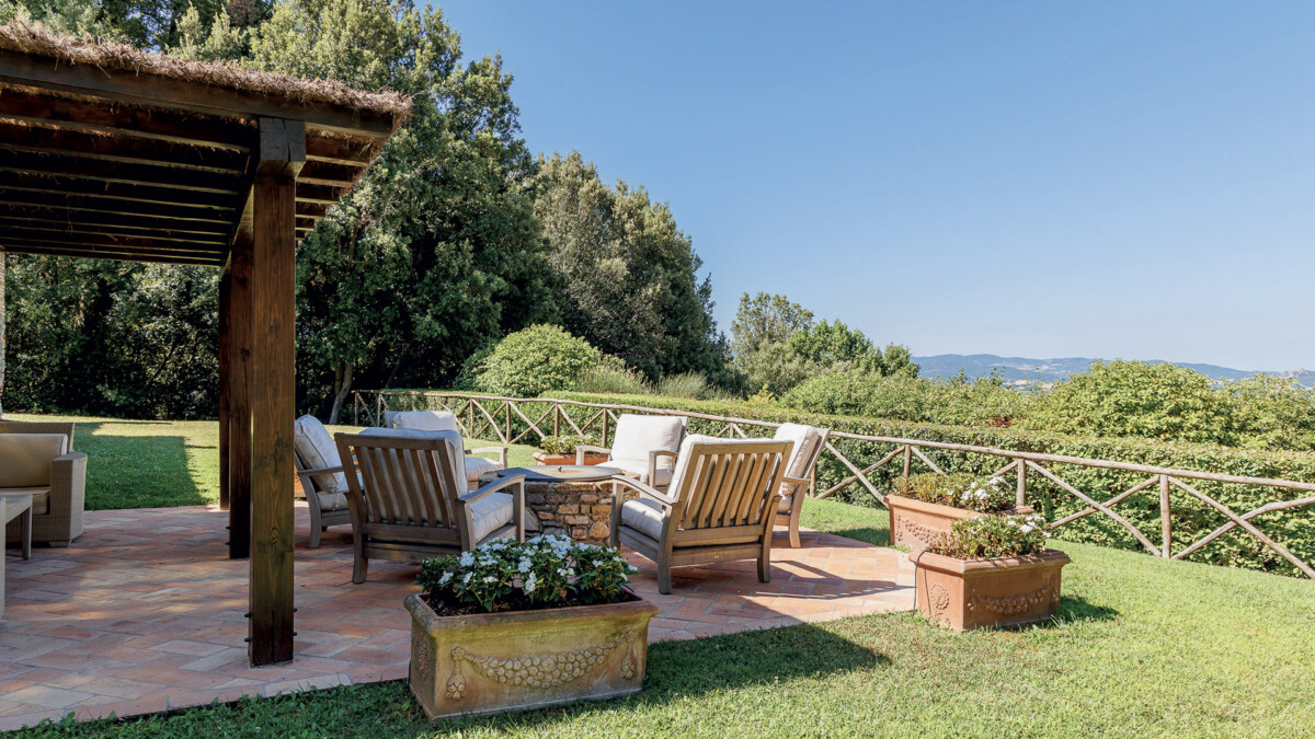 Les espaces extérieurs de la villa sont conçus pour vivre la dolce vita toscane.