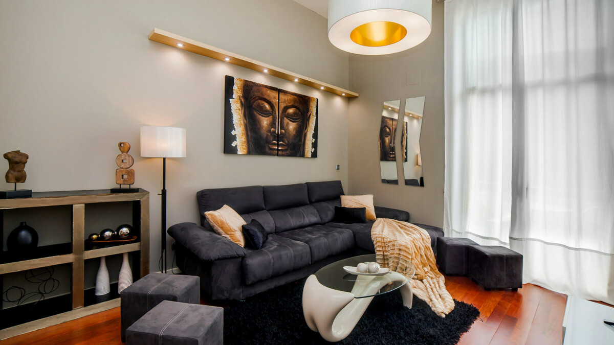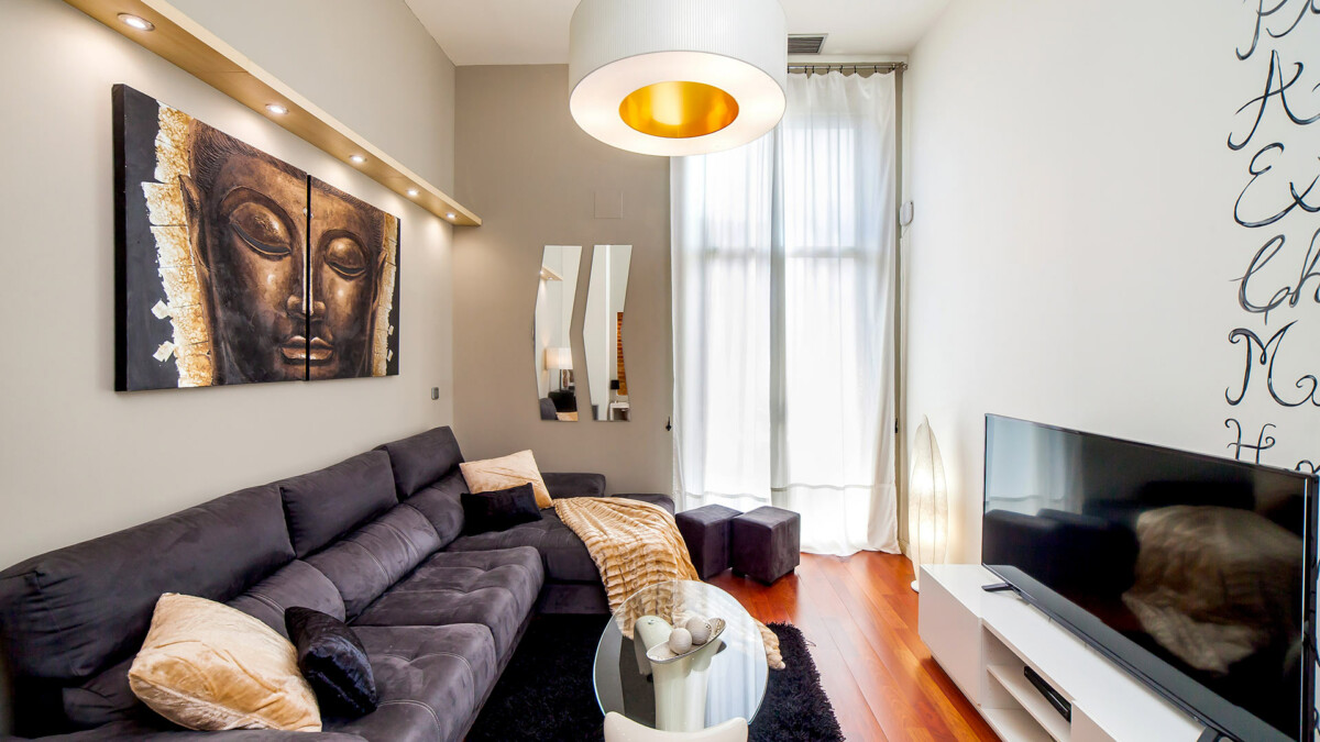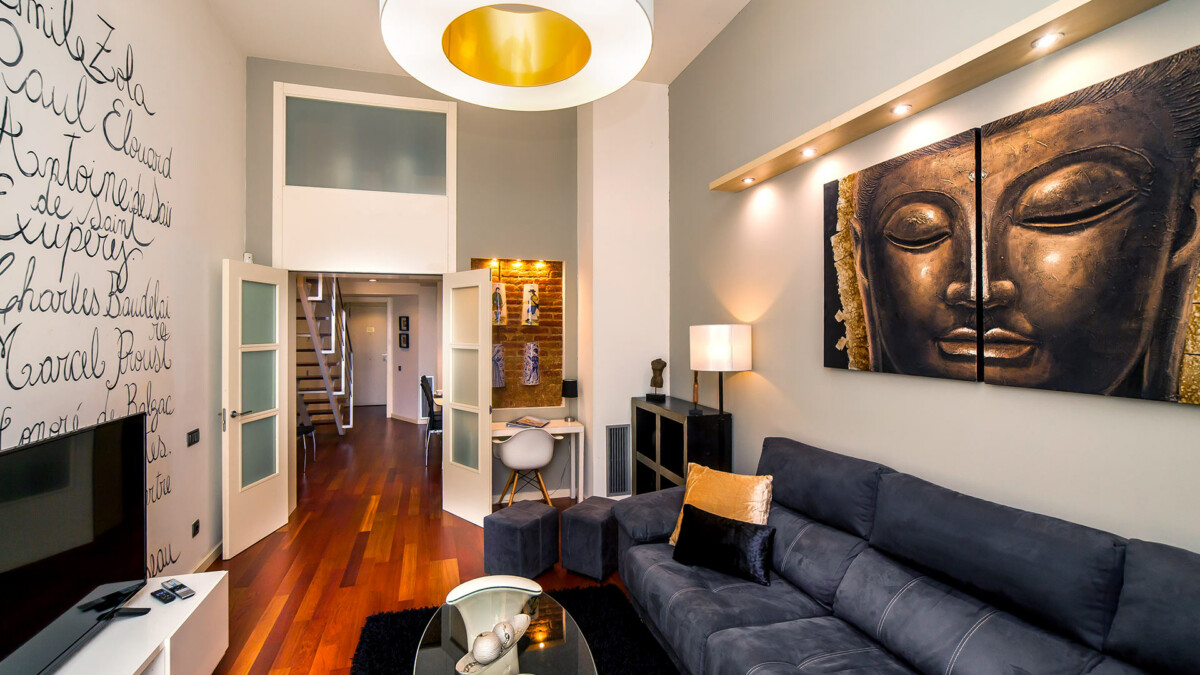 Le salon a beaucoup de lumière naturelle ce qui en fait un endroit idéal pour se détendre après une longue journée de visites à Barcelone.