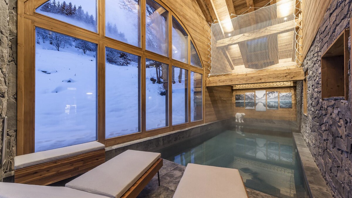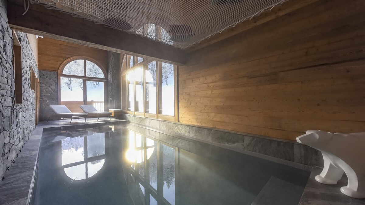 Vous y trouverez également l’espace bien-être avec sa grande piscine intérieure de 3m x 7m, un espace relaxation, et une grande baie-vitrée s’ouvrant sur le rez-de-jardin.