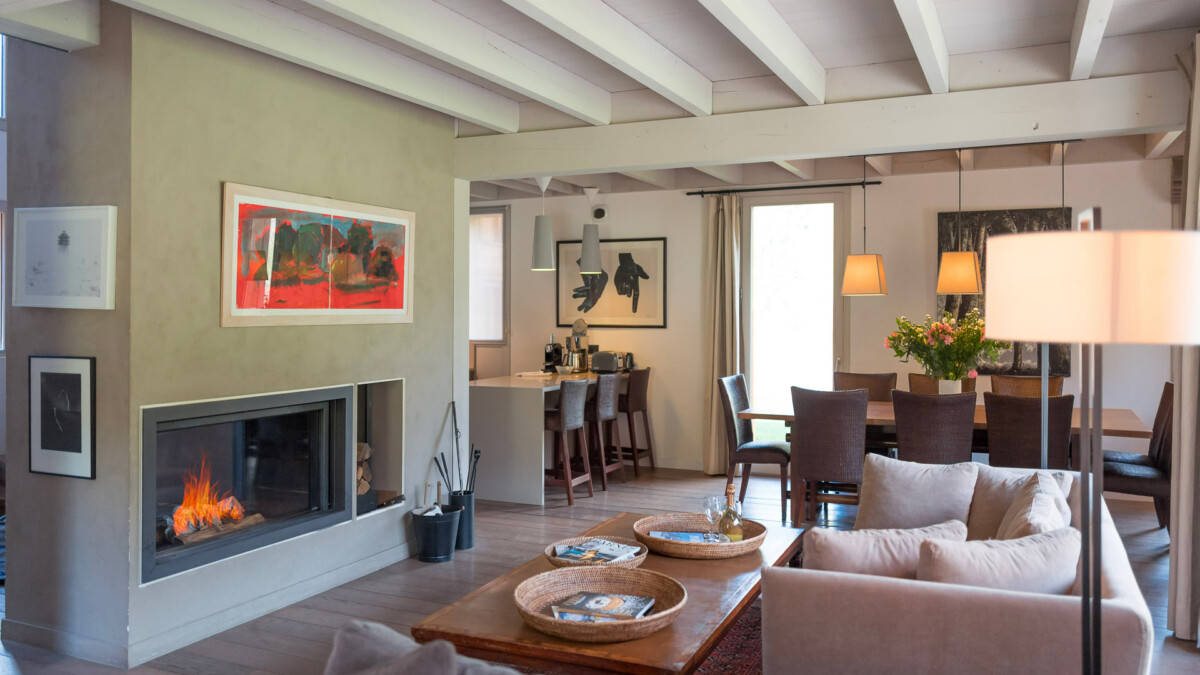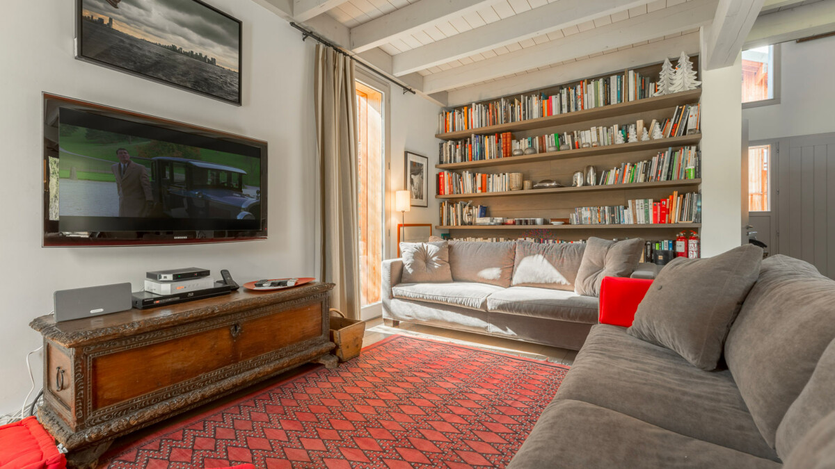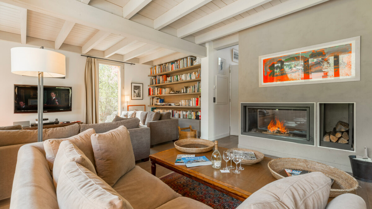 Canapés avec télévision murale, grande bibliothèque, cheminée vitrée, poele à bois (insert qui permet de chauffer rapidement toute la maison), 1 grande table chinoise ancienne